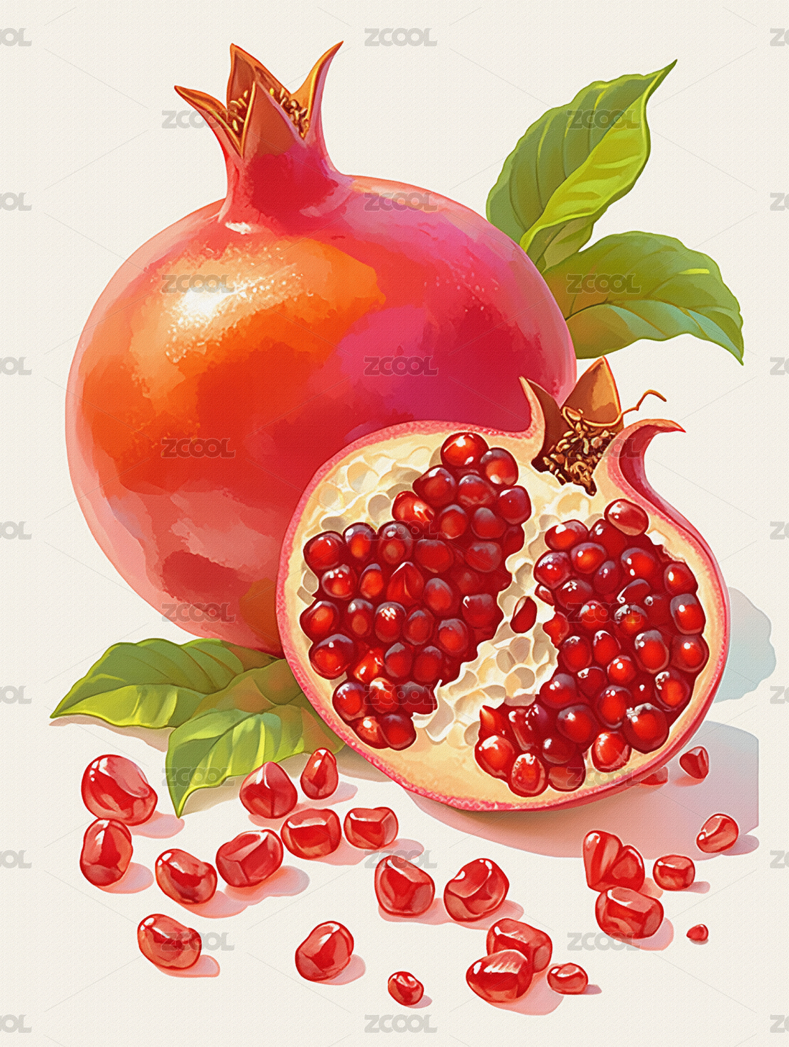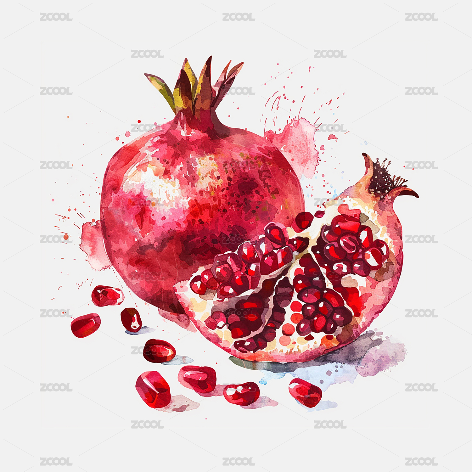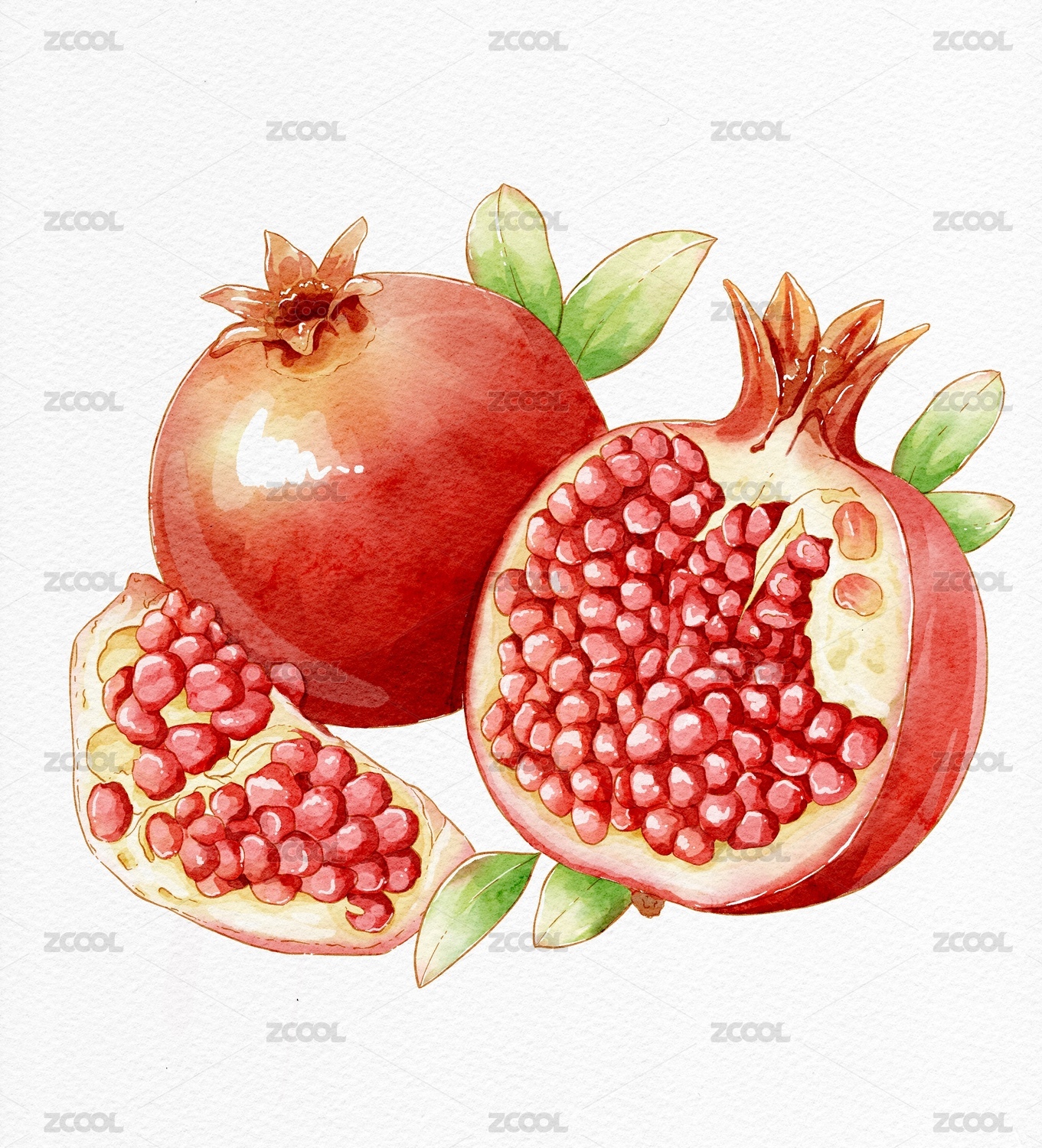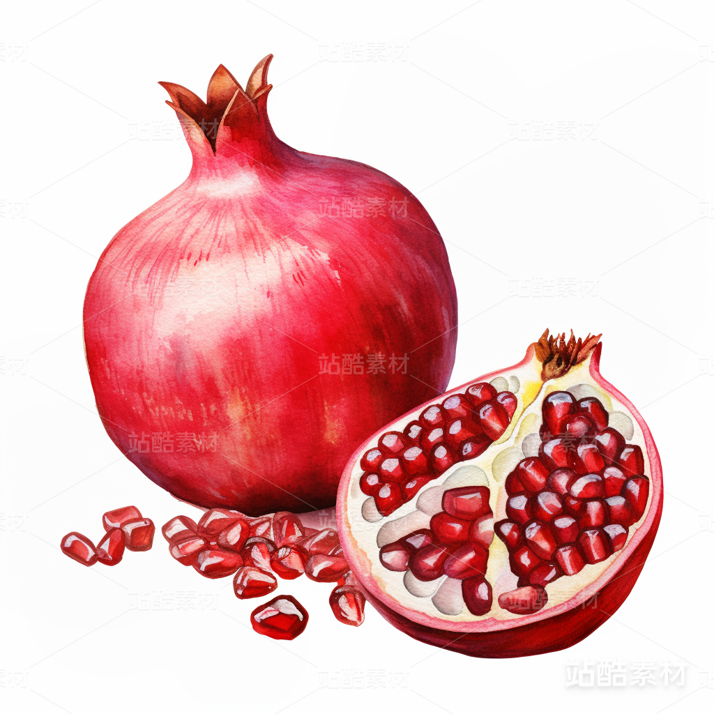 石榴水彩插画