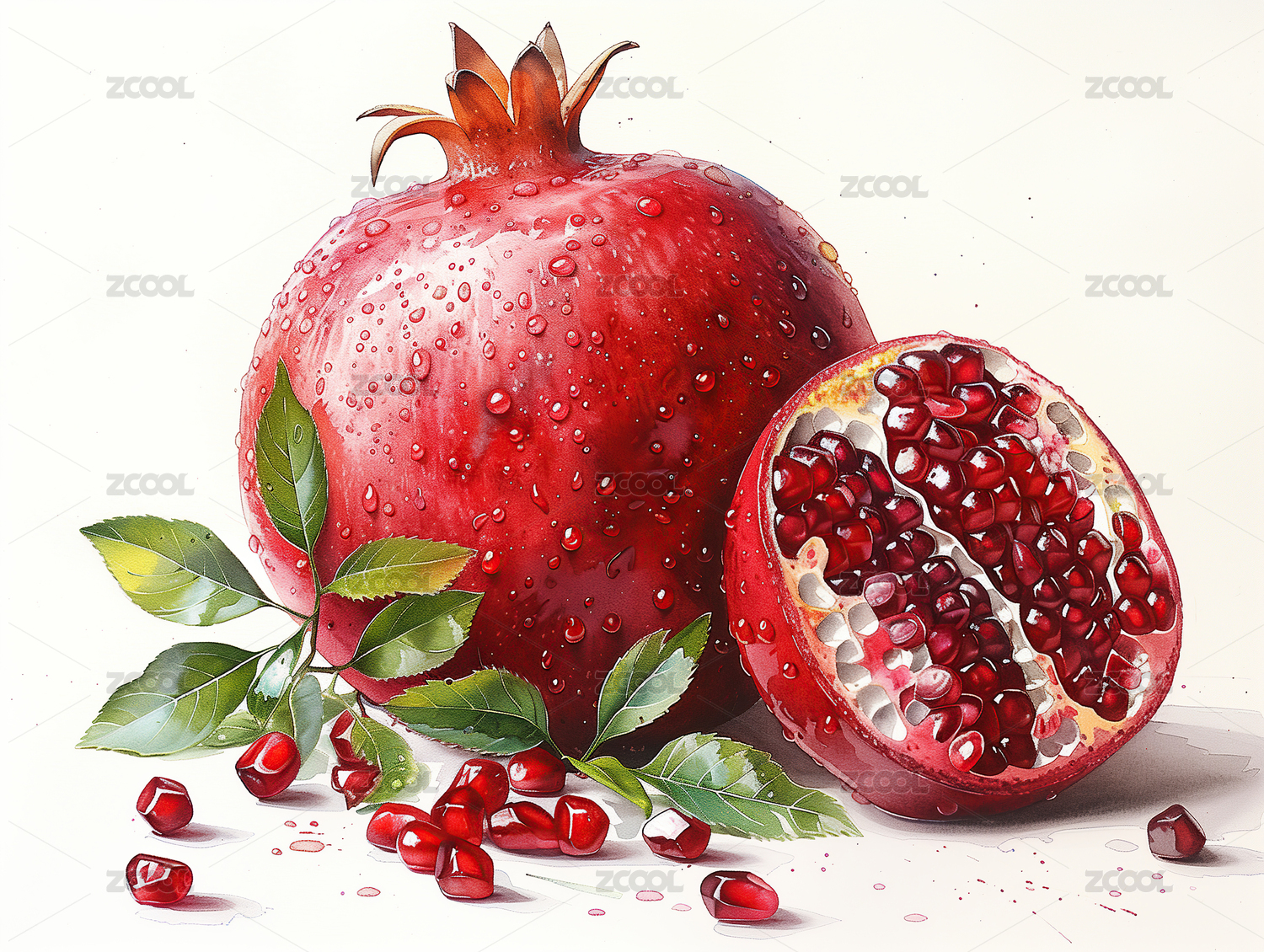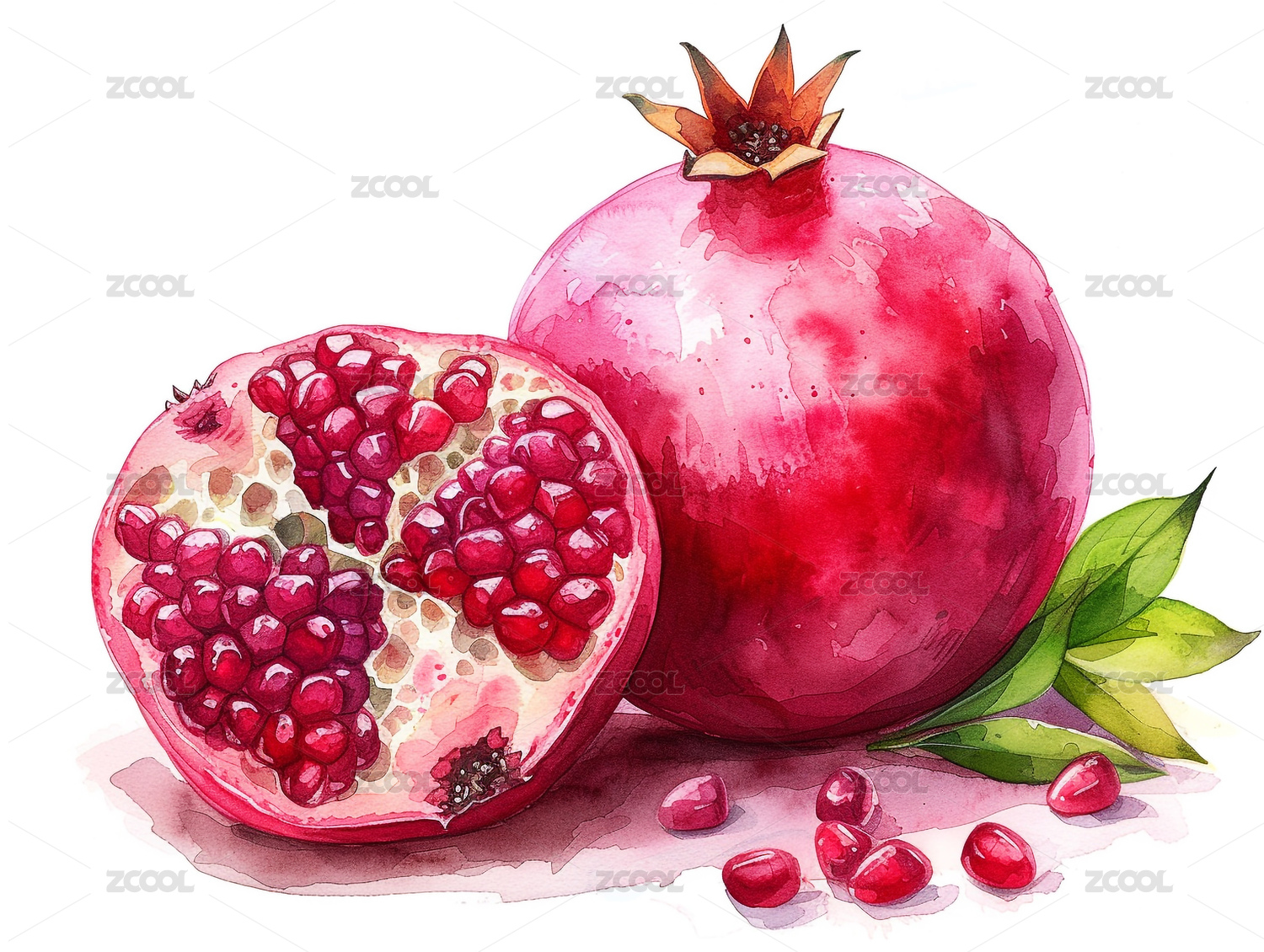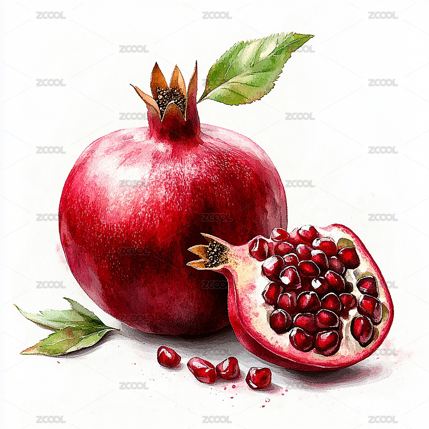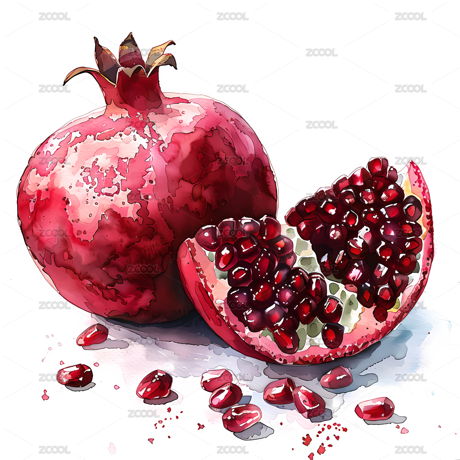 石榴水彩插画
