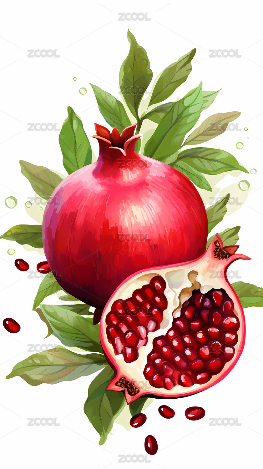 数码科技水彩石榴插画