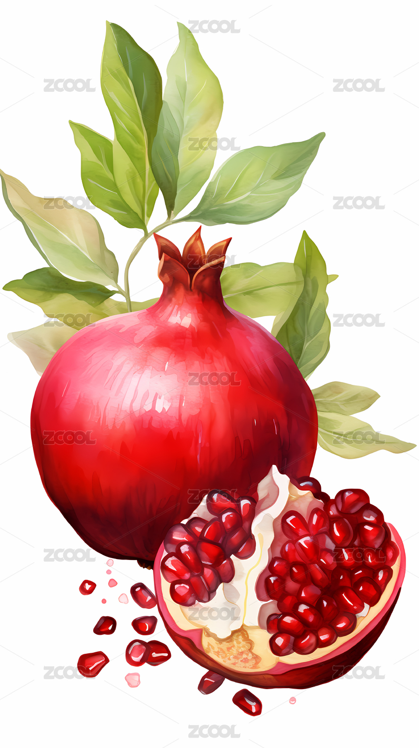 水彩风水果石榴