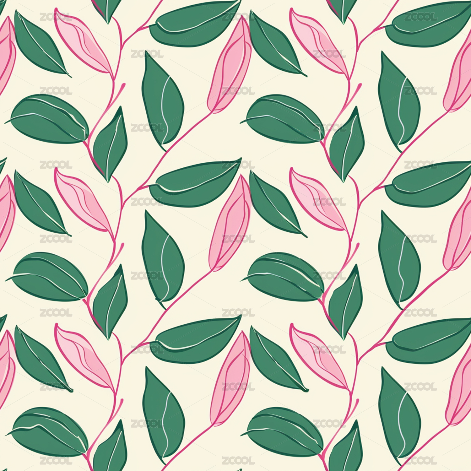 可循环无缝图案植物叶子花印花