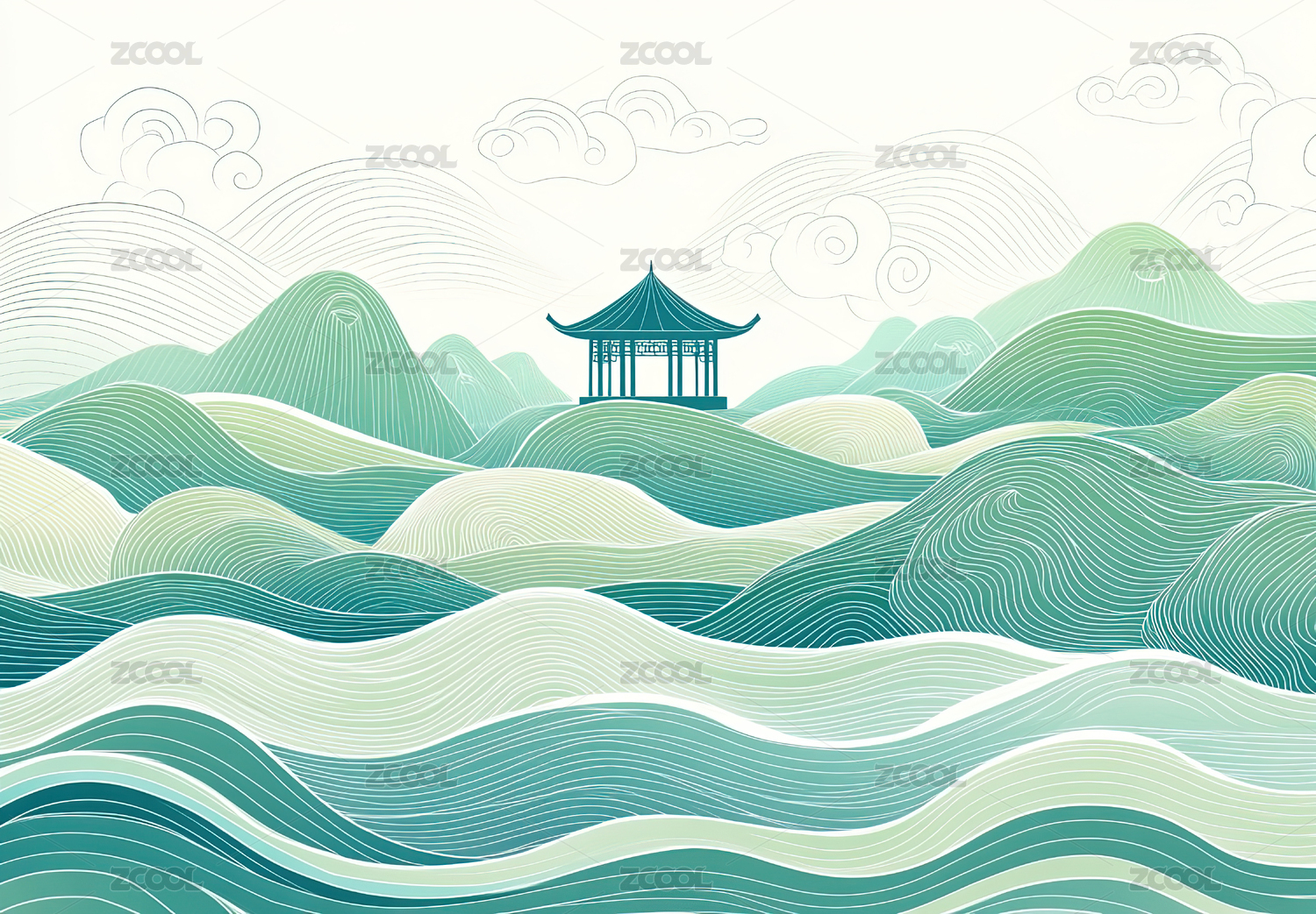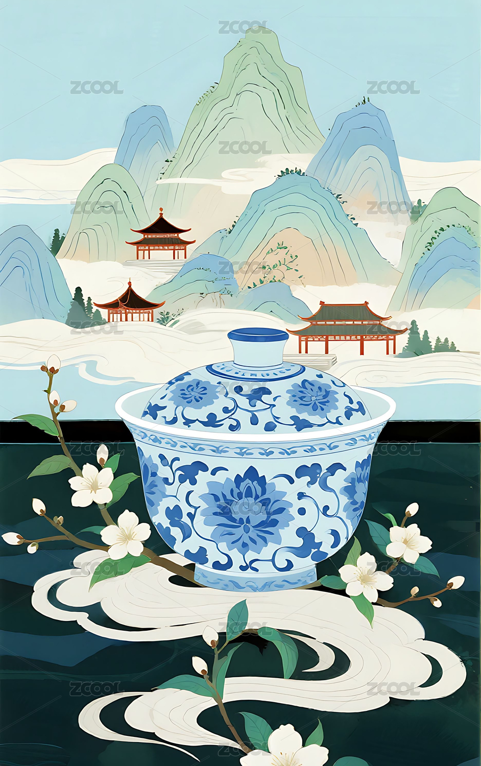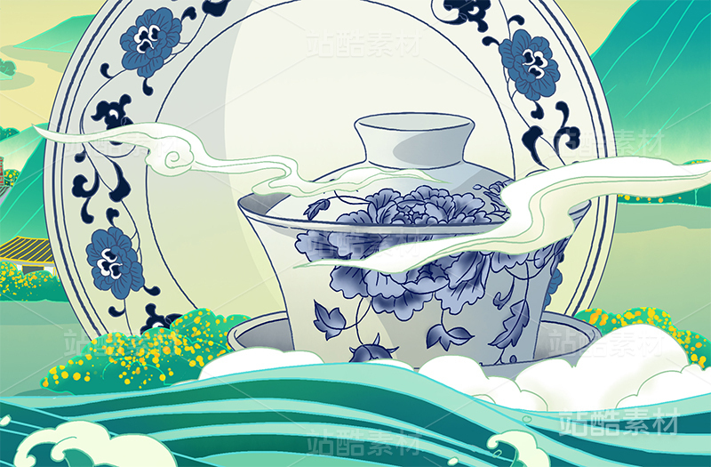 江西景德镇瓷器元素,山水元素,分层好,可灵活使用。