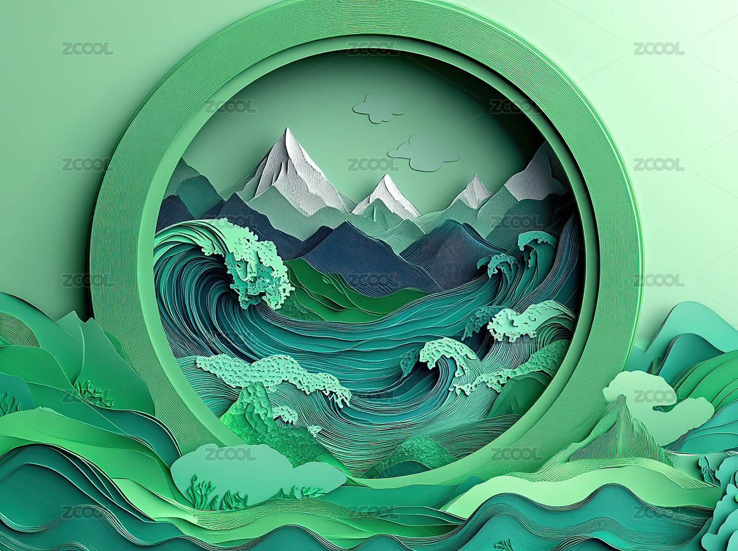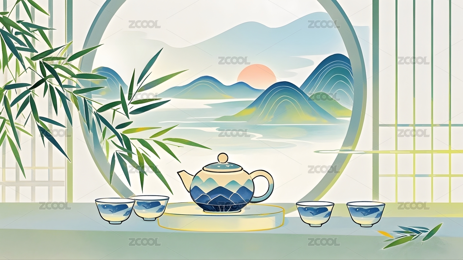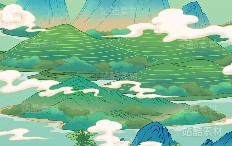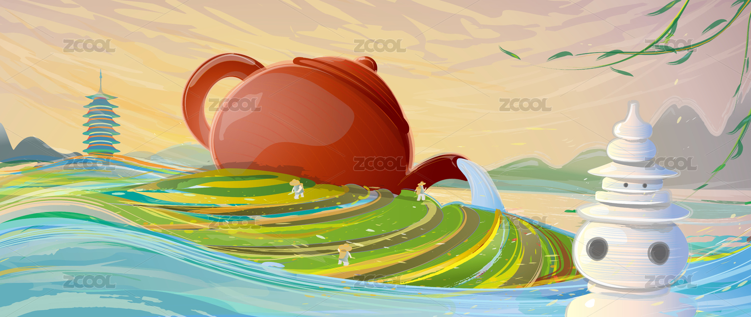 江西景德镇瓷器元素,山水元素,分层好,可灵活使用。
