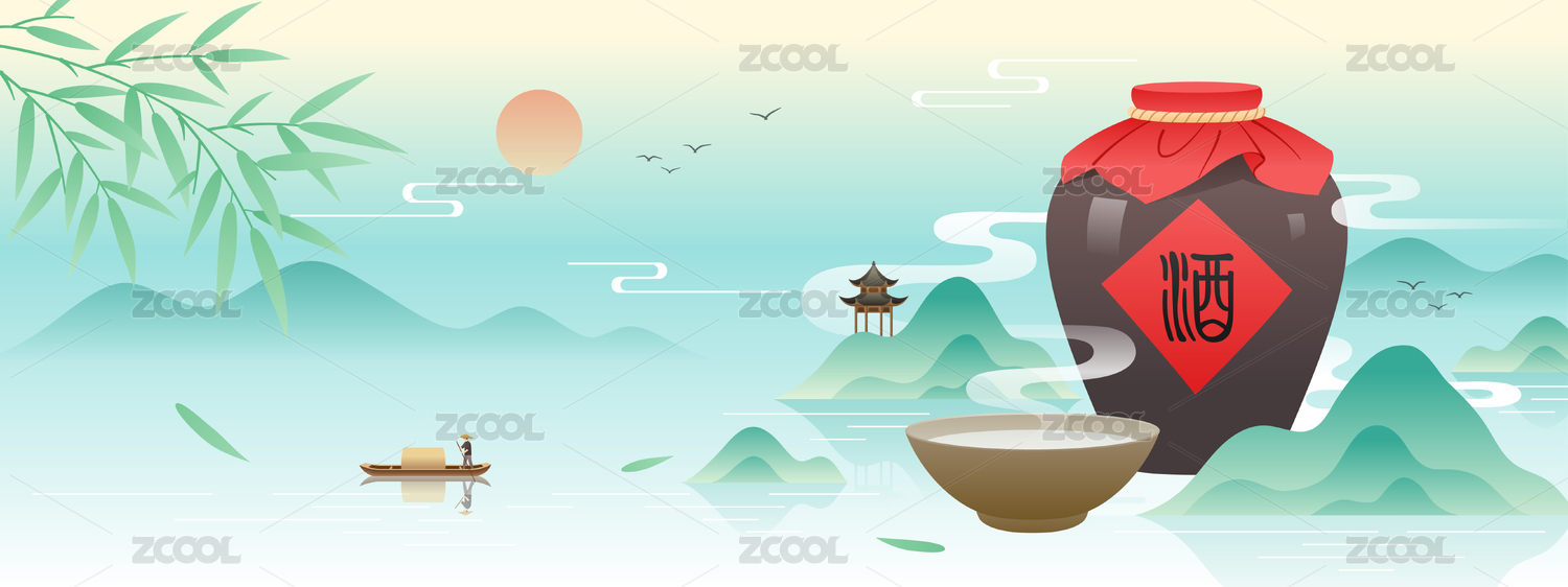 端午龙舟雄黄酒和粽子清新国潮风矢量插画
