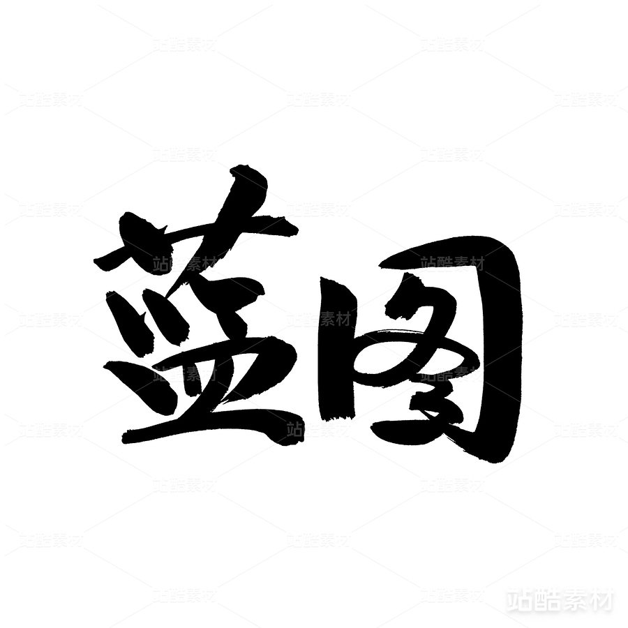 蓝图手写汉字书法字体字形中国风