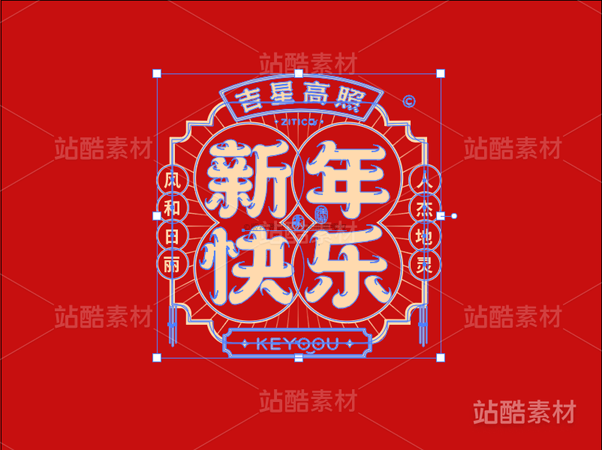 新年快乐-国潮字体标志组合AI矢量源文件 KEYOOU 张家佳字体设计