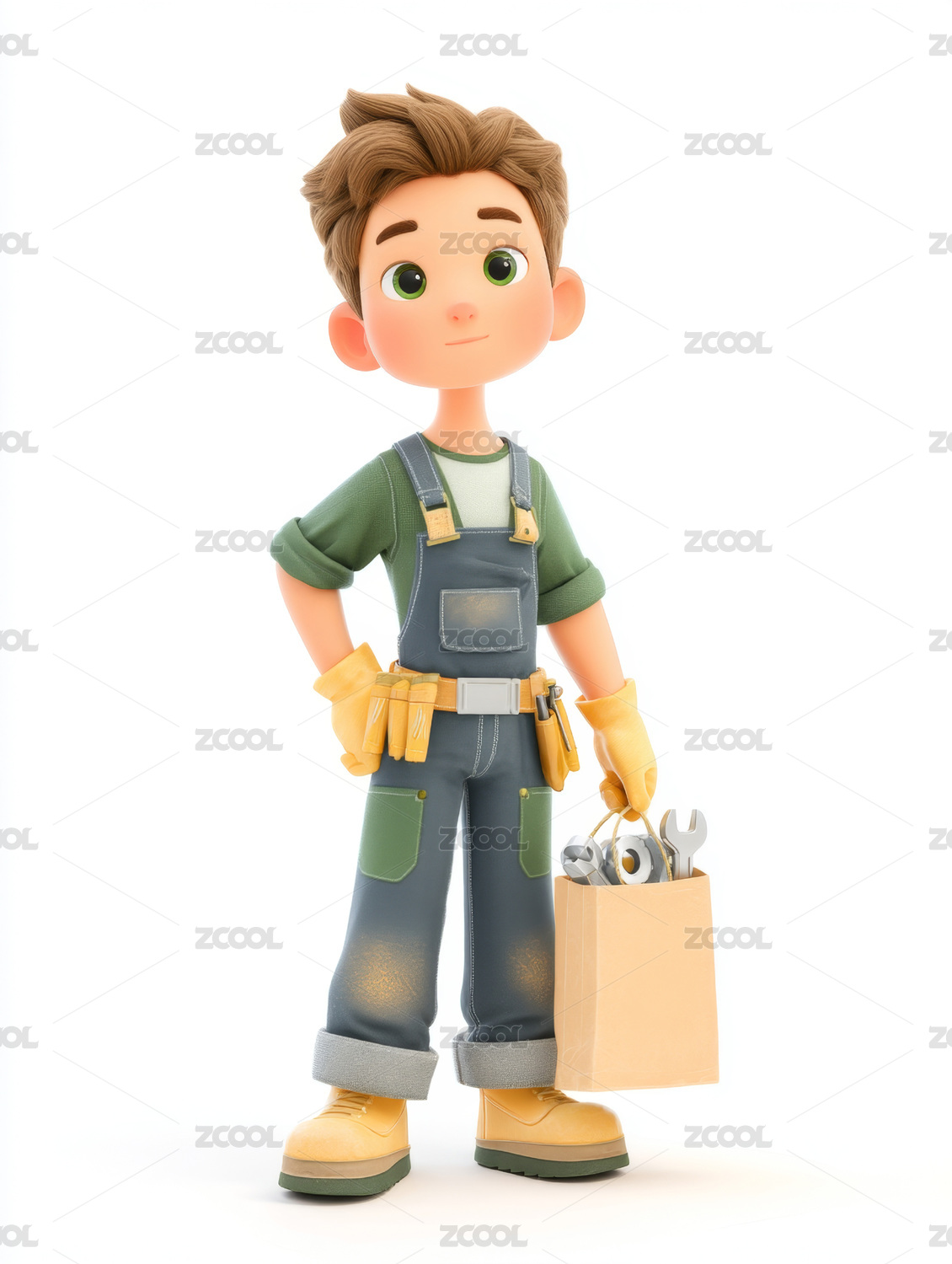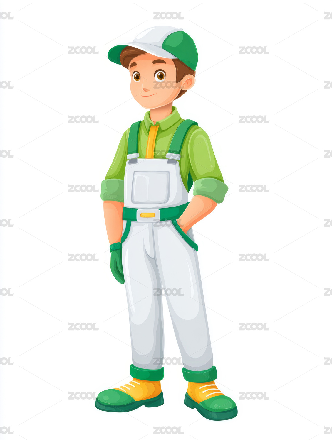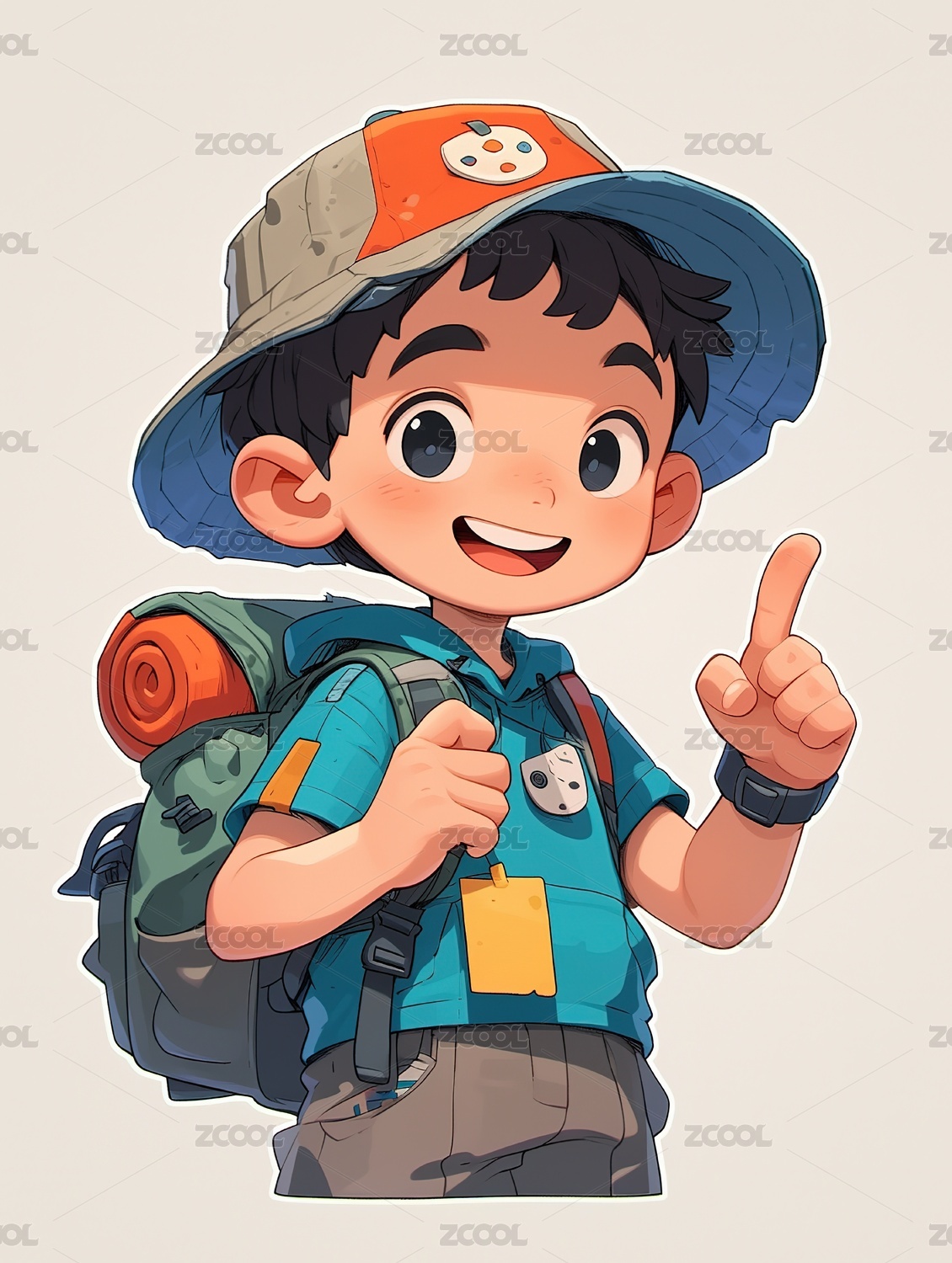 2.5D卡通男孩头像,头戴鸭舌帽,身穿背带裤。文件包含上色图与线稿图,AI源文件颜色模式为CMYK,可联系调整为RGB。