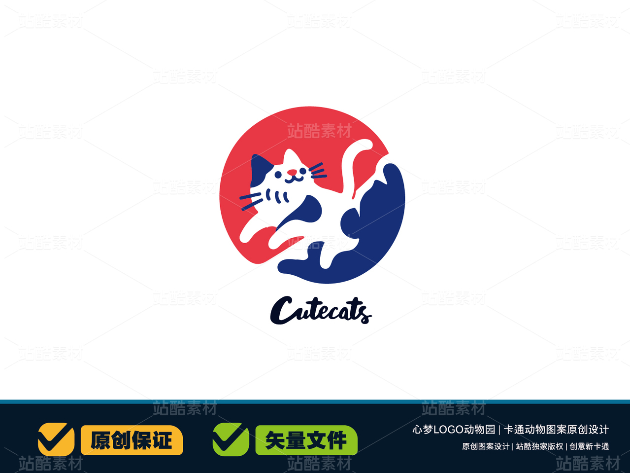 可爱猫咪标志 | 卡通动物矢量卡通设计