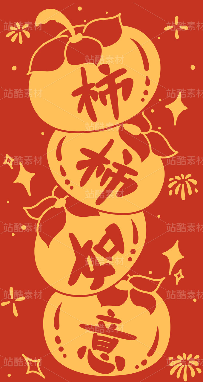 年夜饭锦鲤牡丹赐福开运春节矢量插画海报