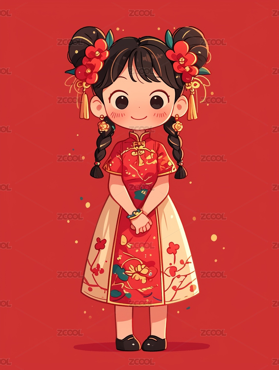 新年开心的旗袍女孩