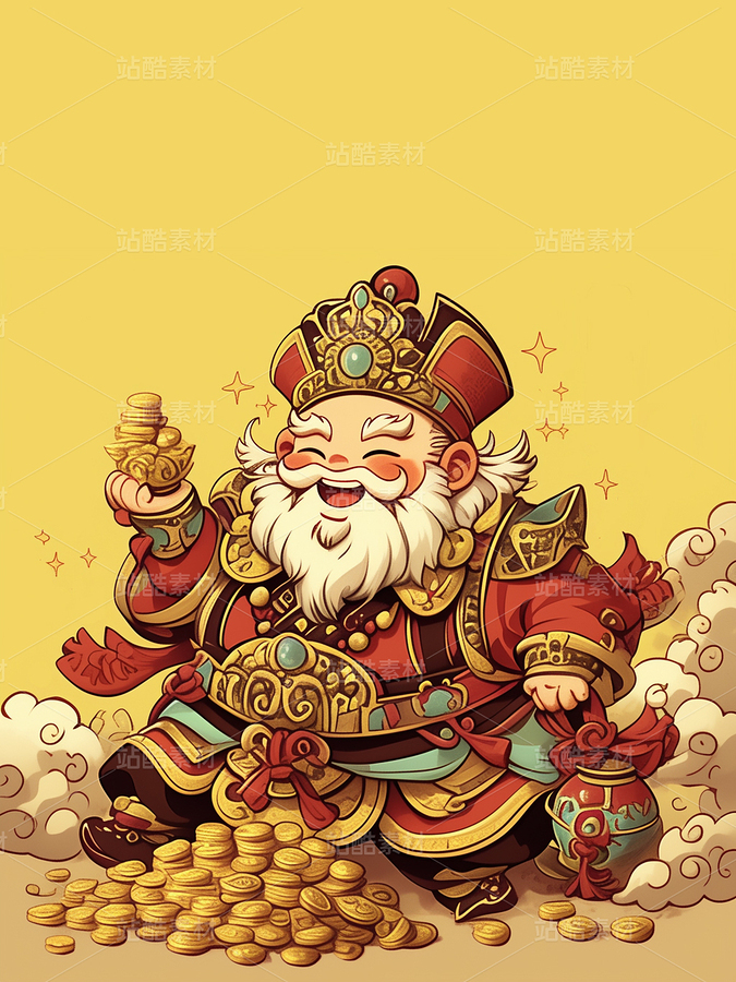 卡通财神插画,可应用于海报、主KV、手机壁纸,手机壳等物料。