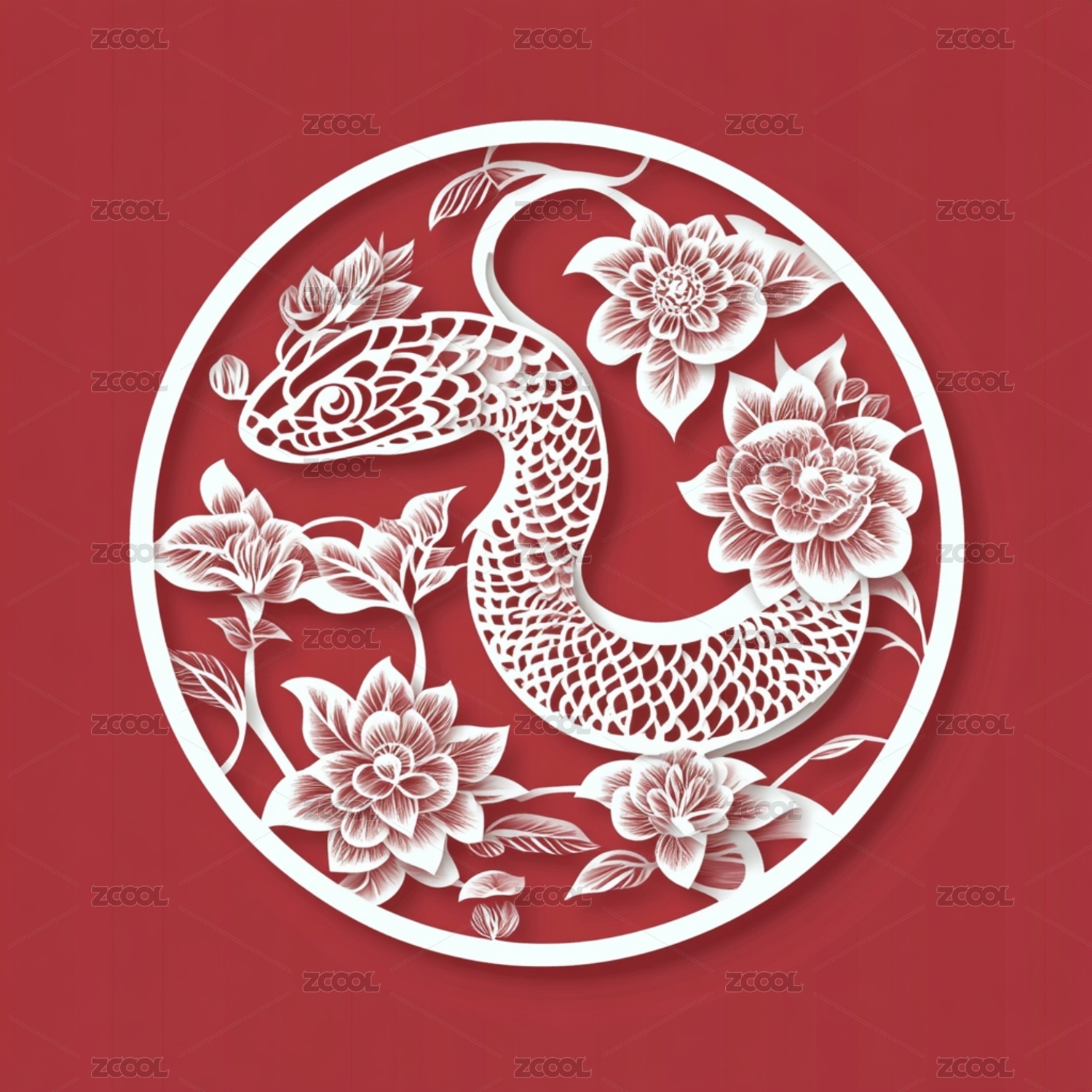 中国剪纸窗花装饰蛇年迎新年
