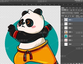 熊猫,原创手绘,功夫,插画,可爱卡通