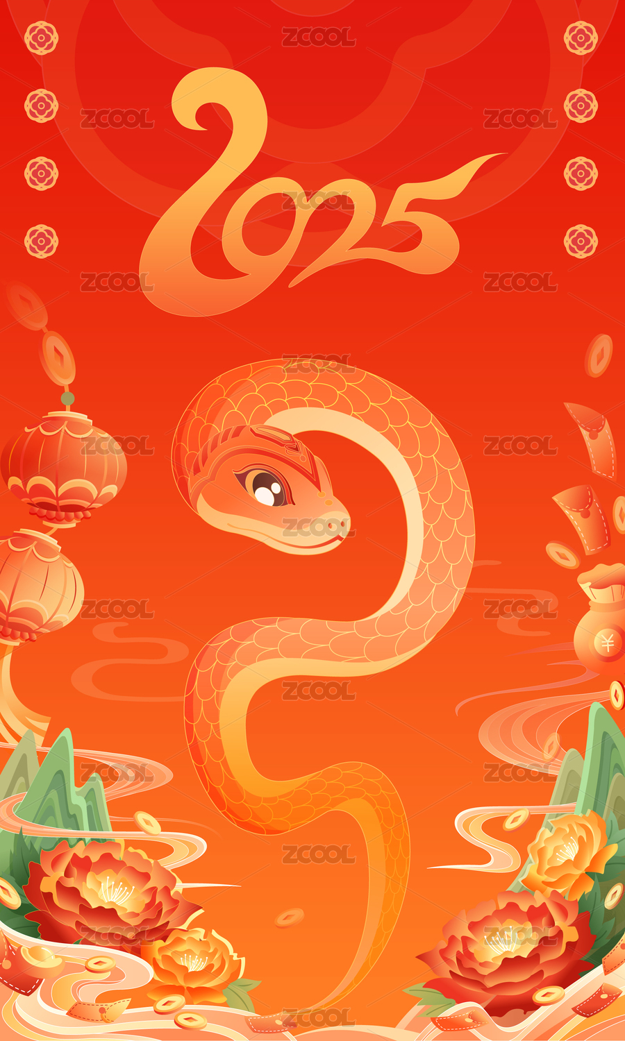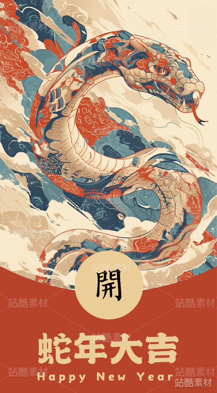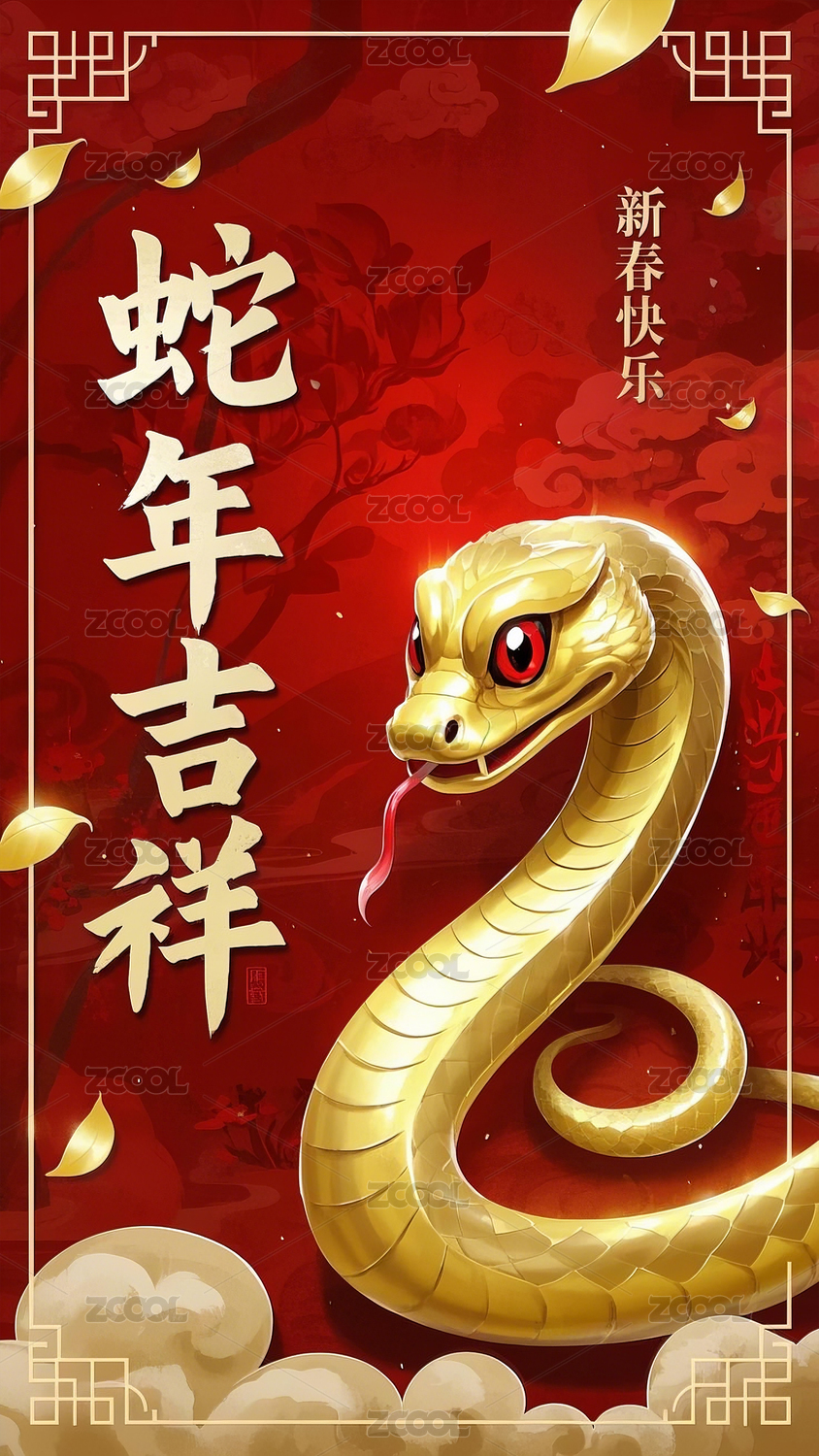 竖版2025蛇年国潮中式新年春节喜庆海报