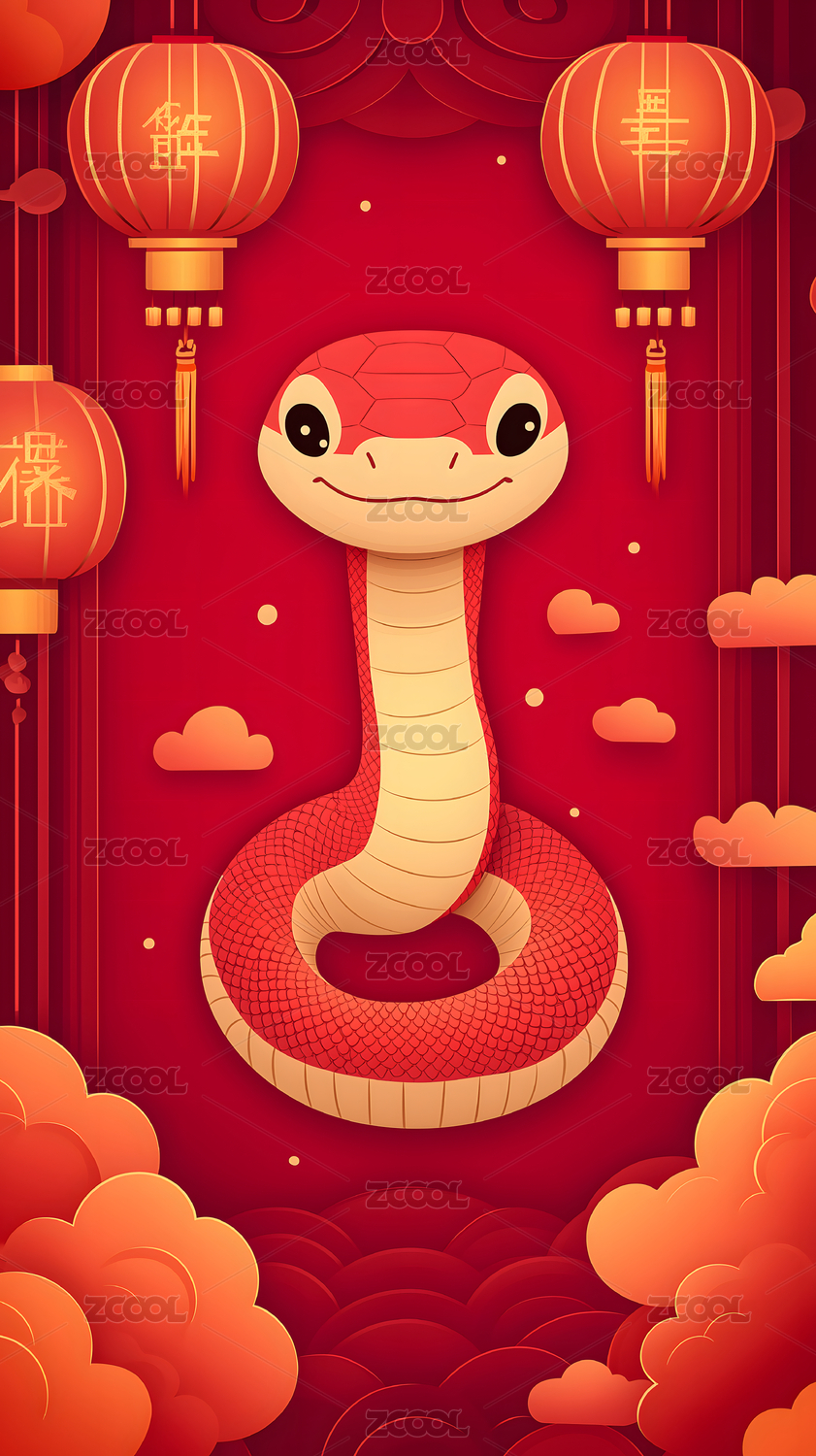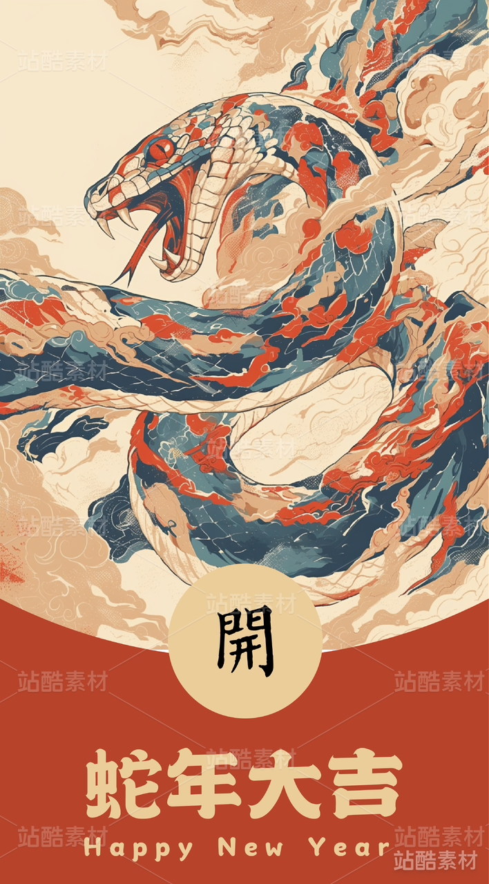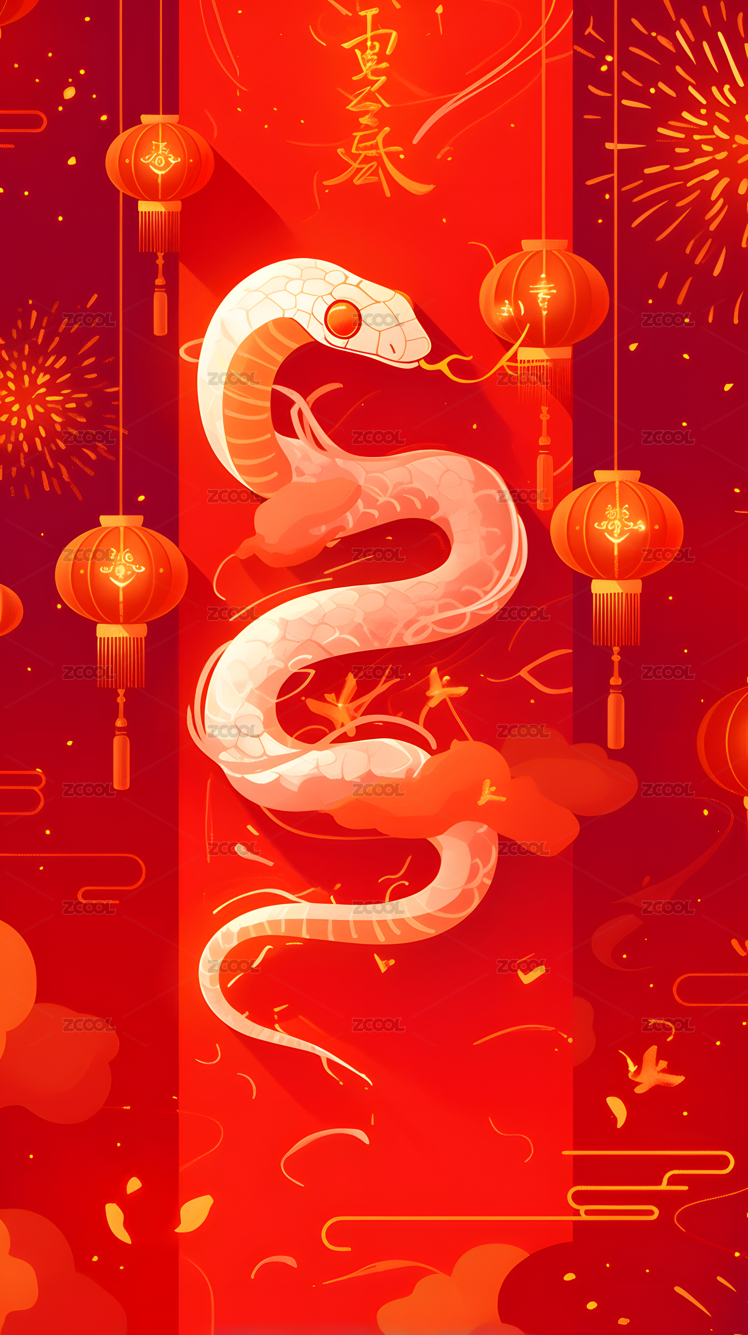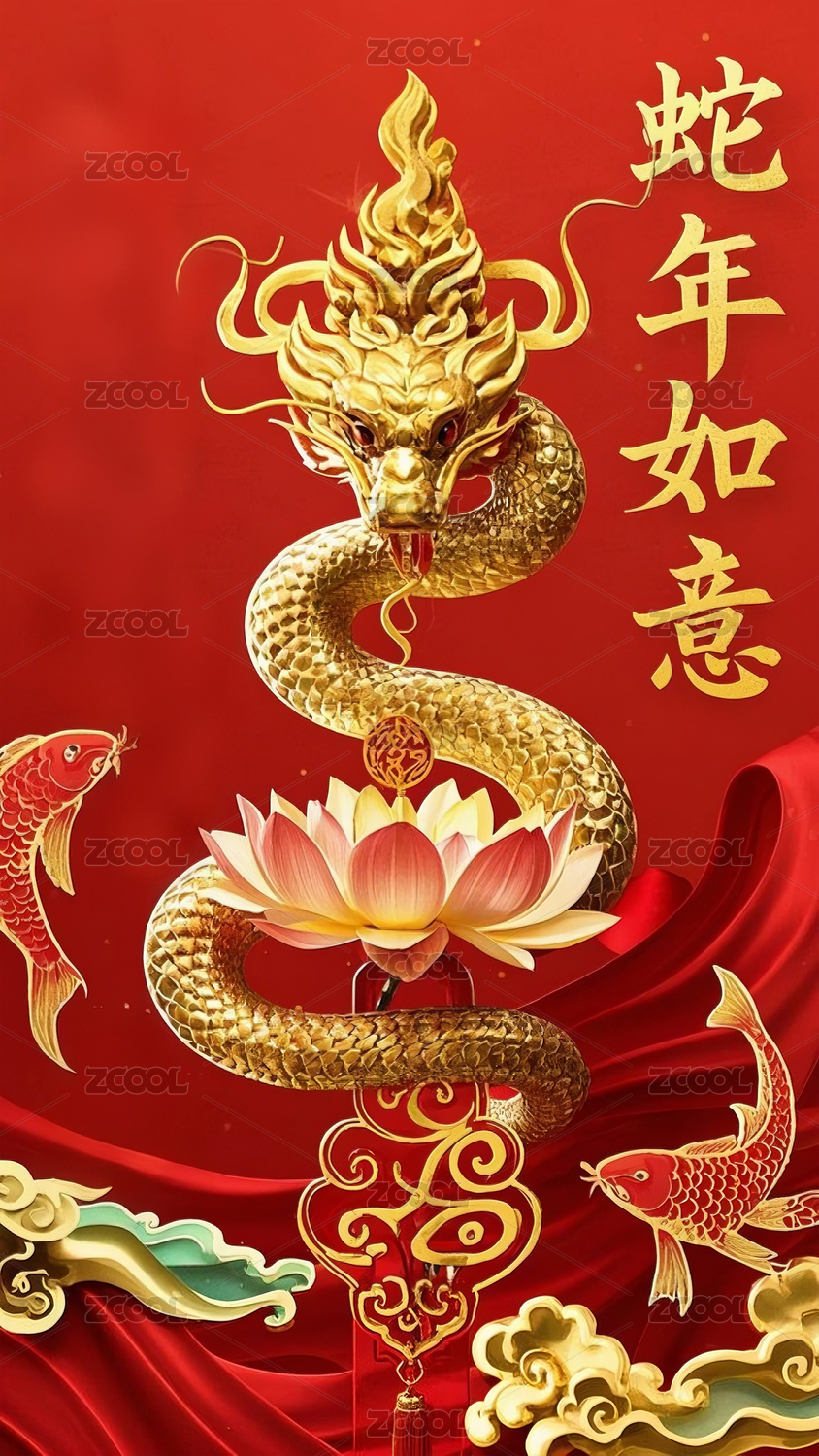 竖版2025蛇年国潮中式新年春节喜庆海报