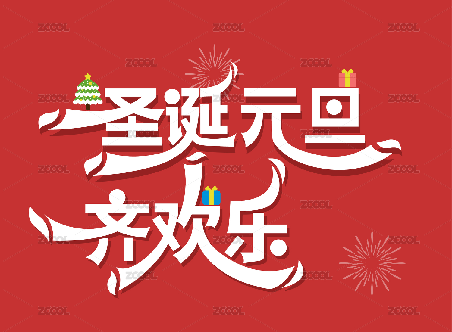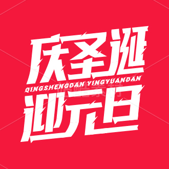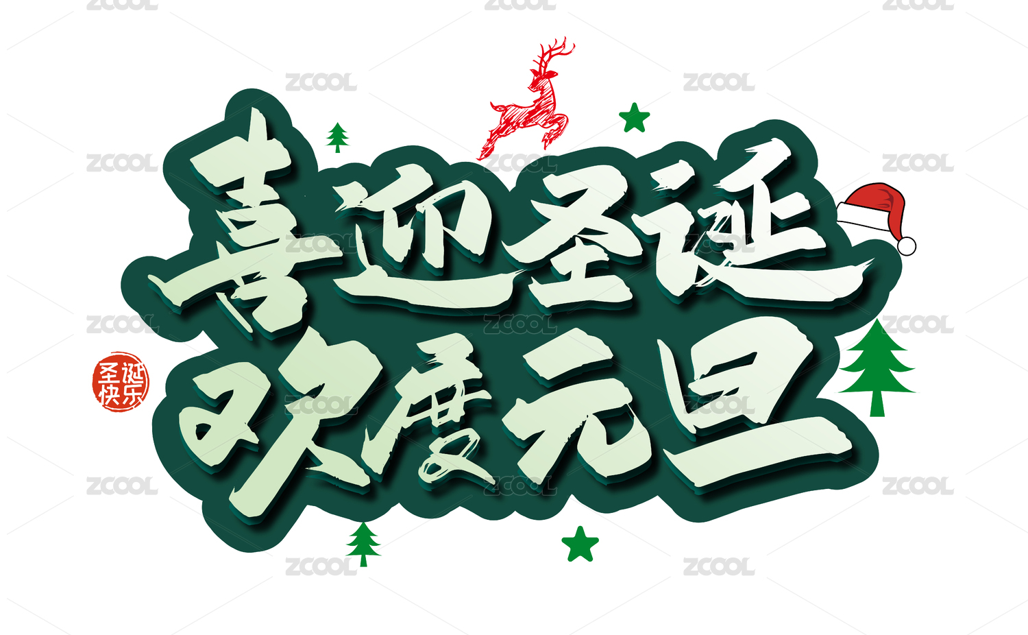 绿色手写喜迎圣诞 欢度元旦艺术字