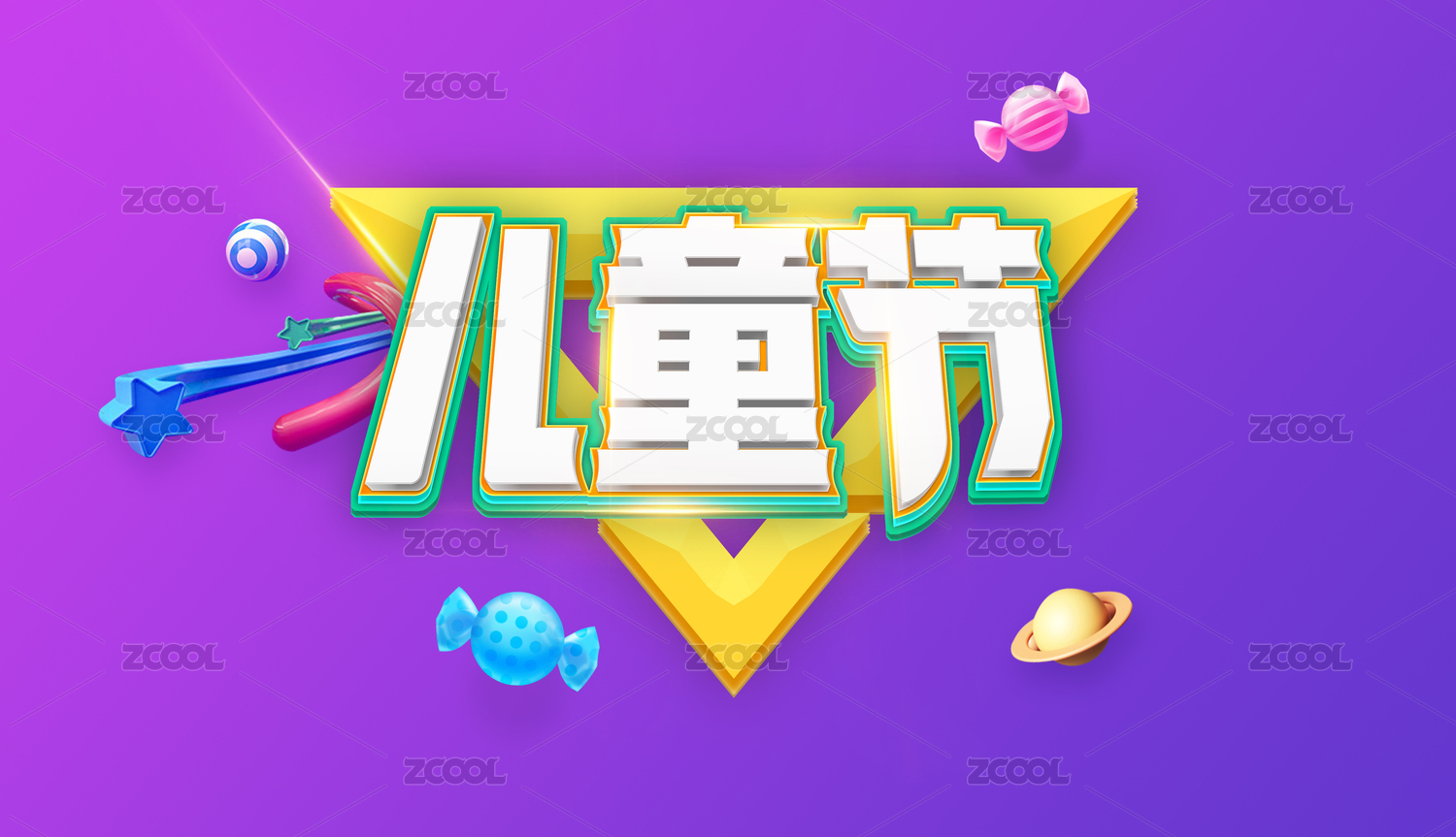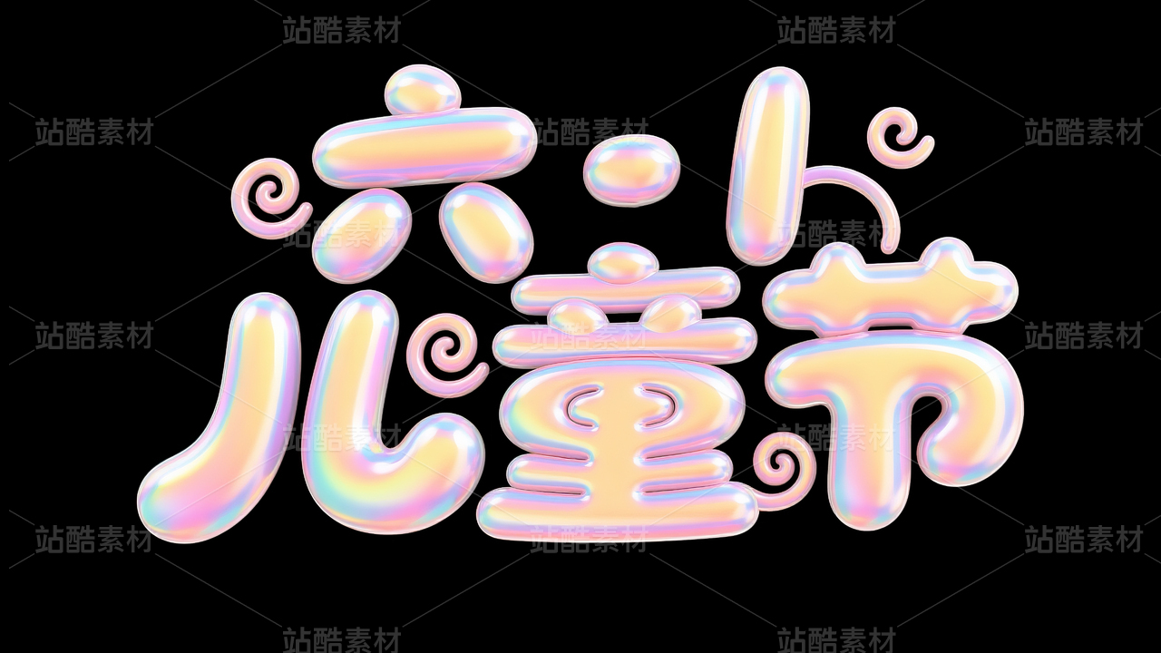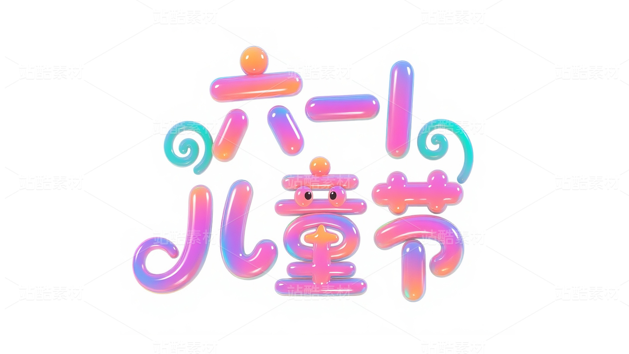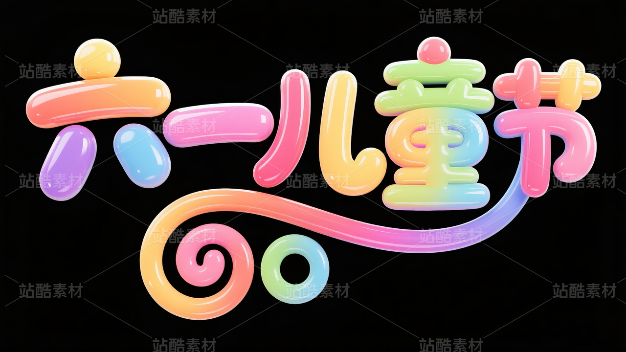 字体设计六一儿童节螺旋卡通镭射彩色字体