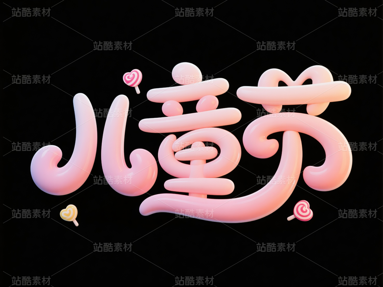 字体设计线条圆润流畅六一儿童节卡通-唯美设计