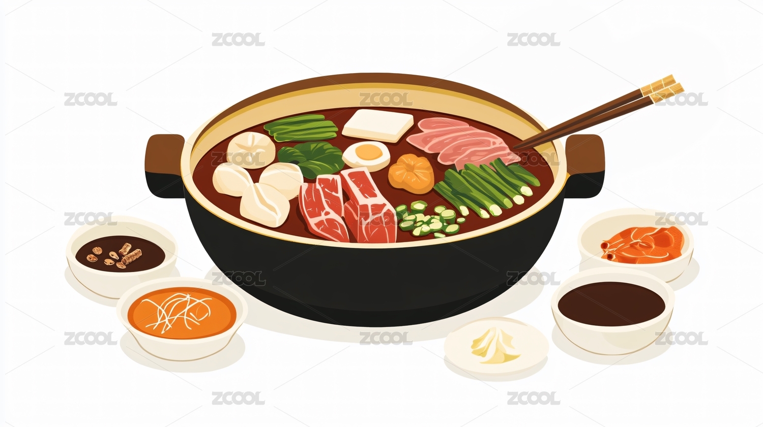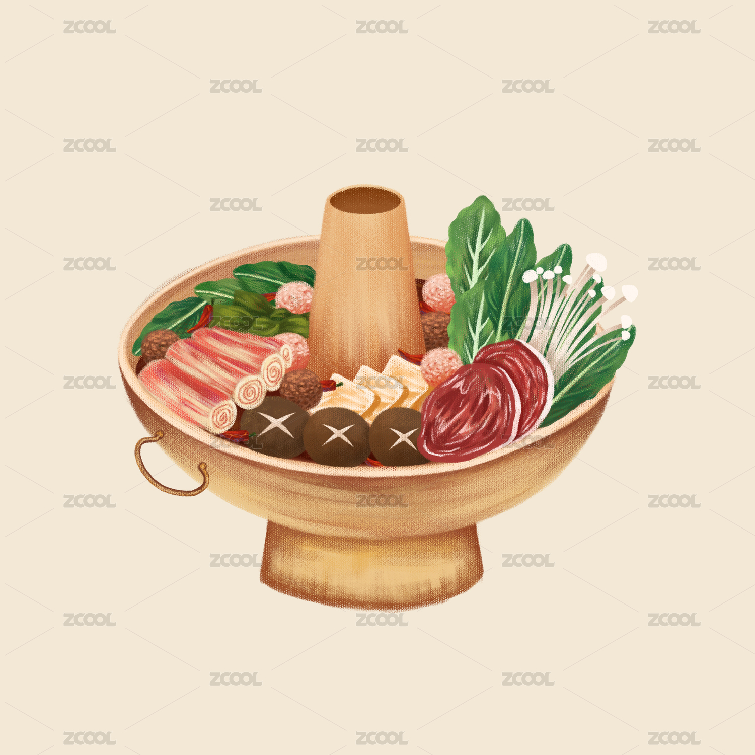 一锅牛肉丸子香菇青菜麻辣的老北京火锅
