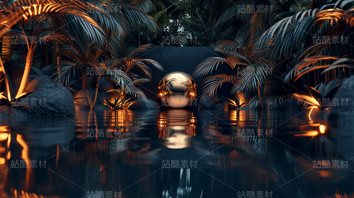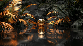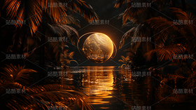 金色绿色黑色自然海边夕阳星球未来高端高级感