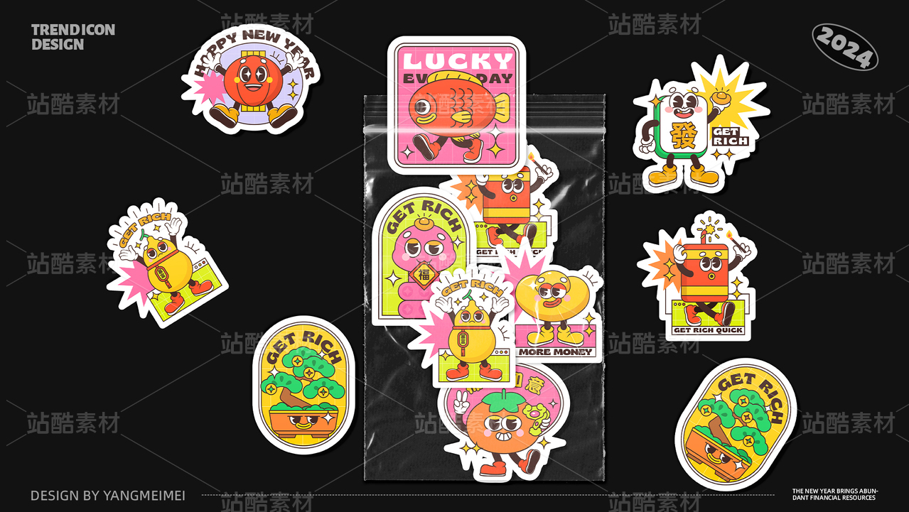 春节潮流元素矢量插画吉庆贴纸福袋红包