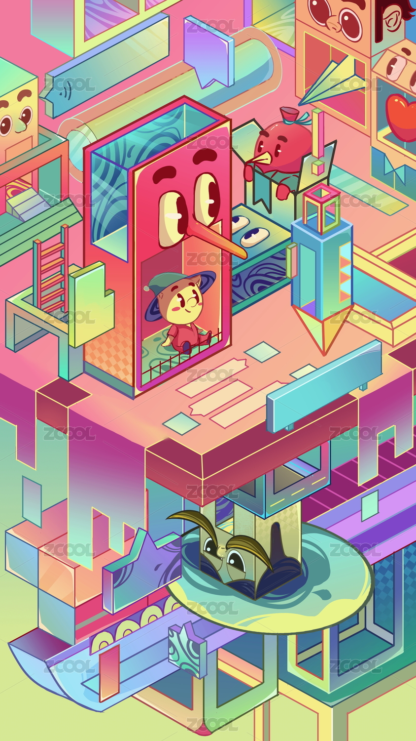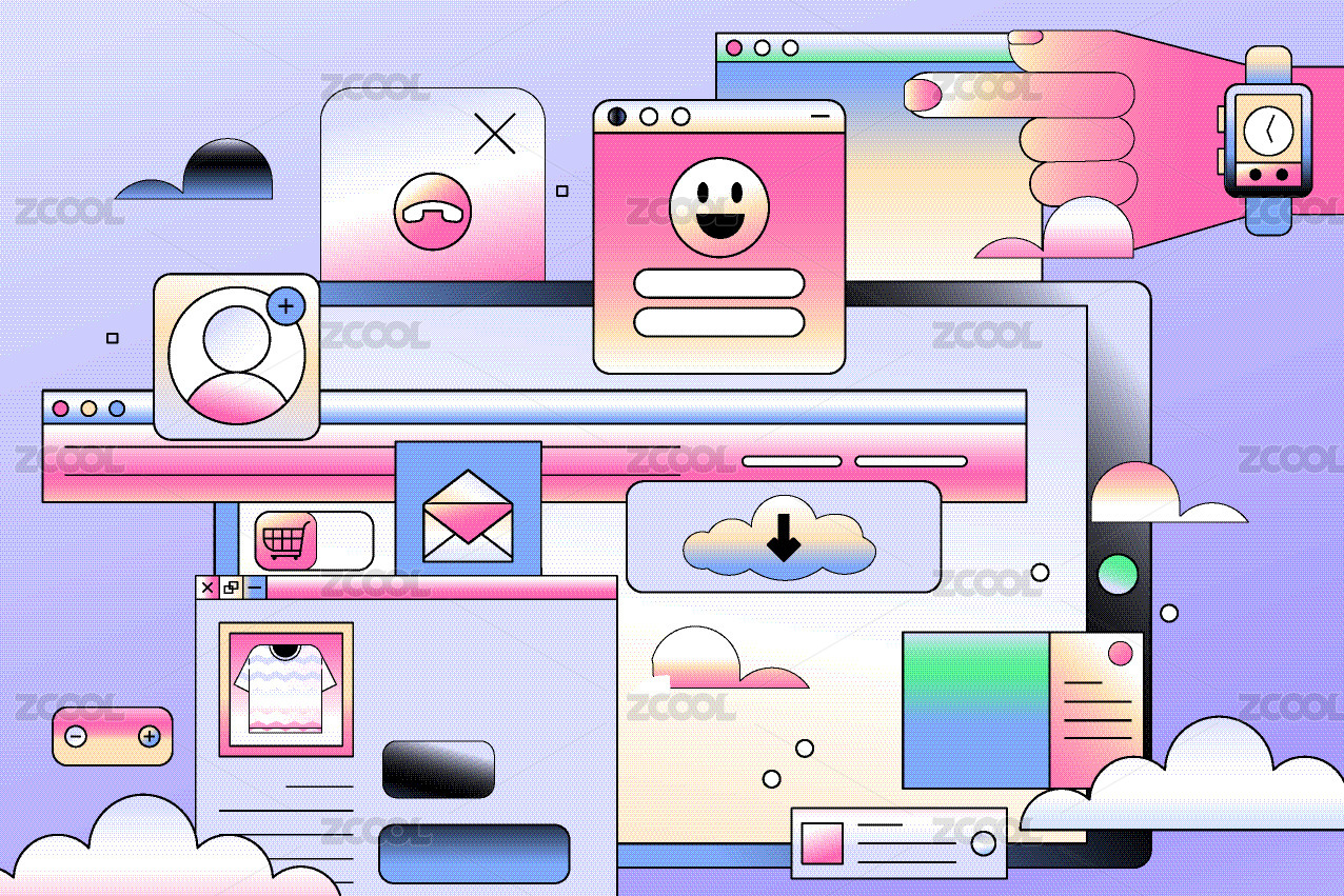 卡哇伊平铺-卡通图案拼贴-包装延展素材