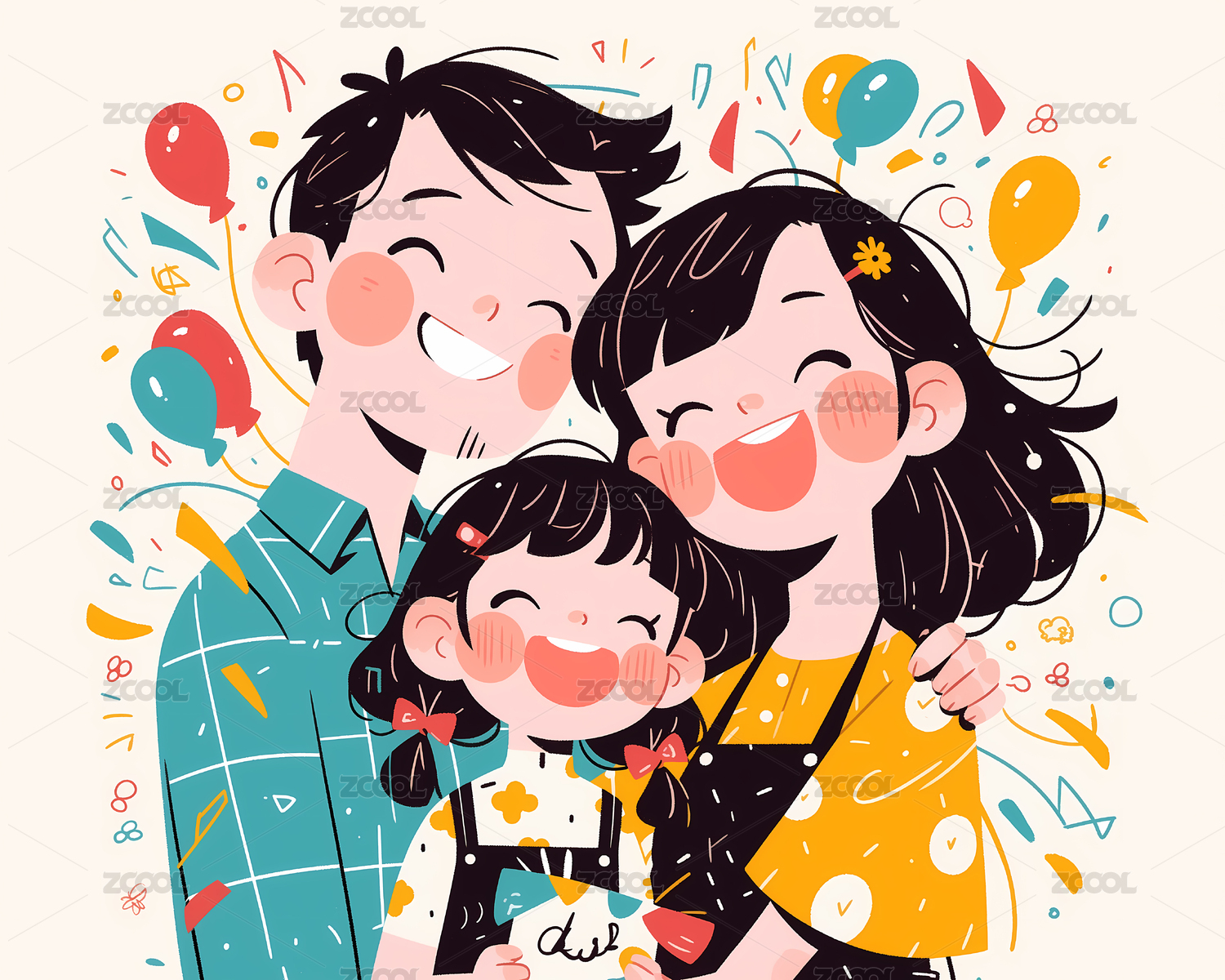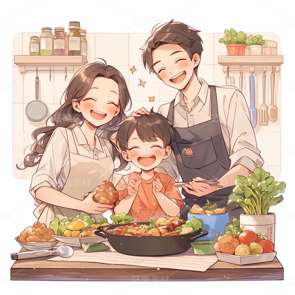 春节新年团圆饭举杯拜年的一家四口免抠人物
