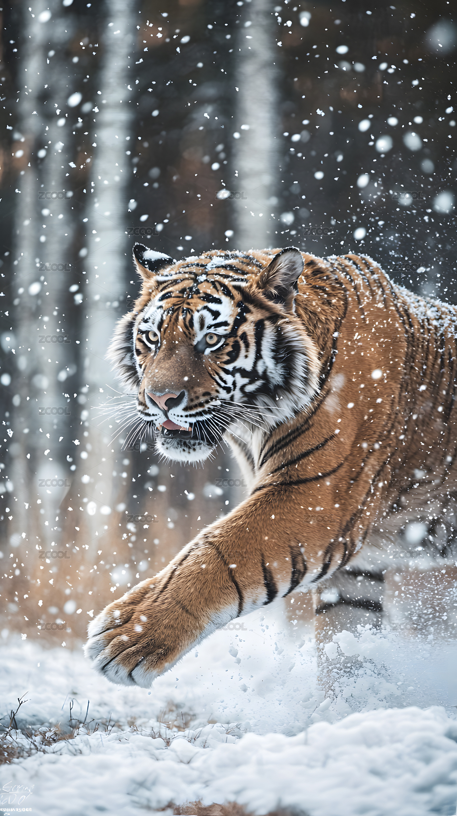 雪中奔腾的虎王