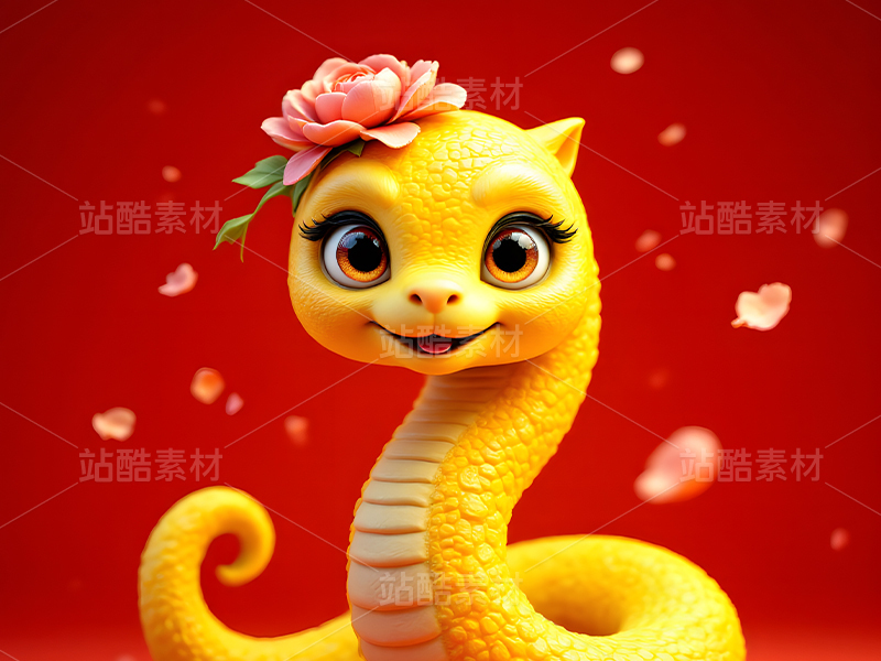 蛇年IP卡通形象吉祥物新年2025新春C4D三维渲染
