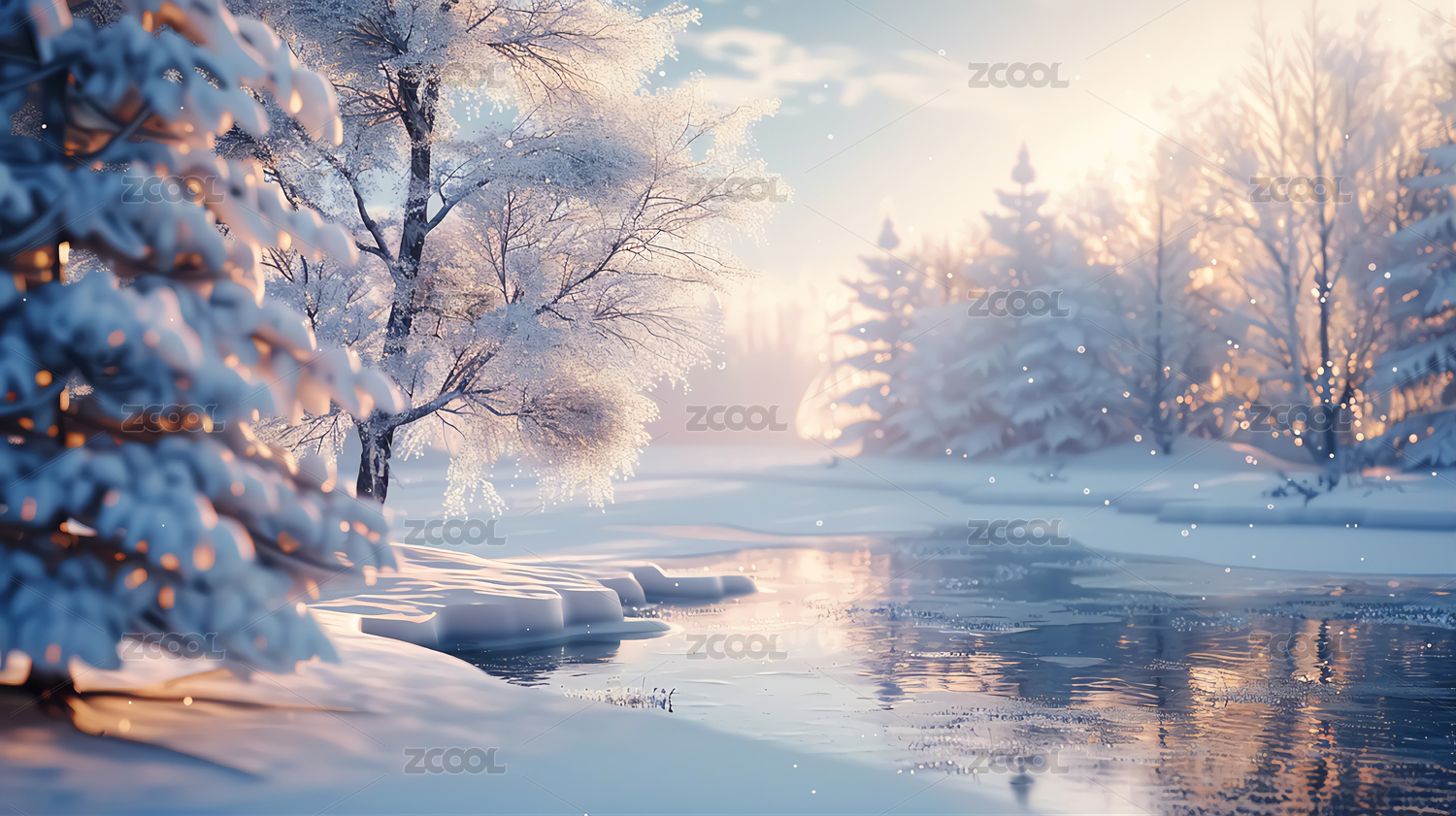 冬日风景雪地大雪天雪景壁纸宣传画