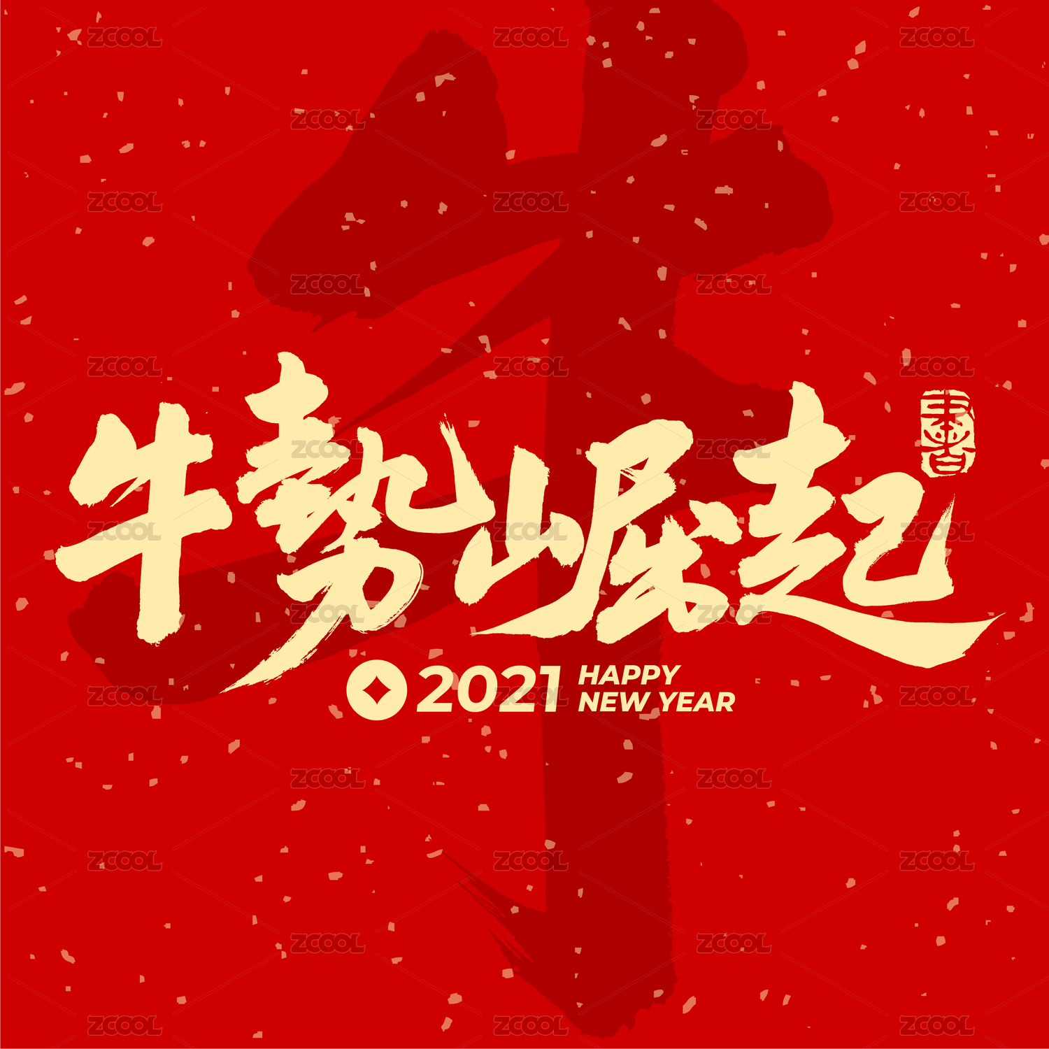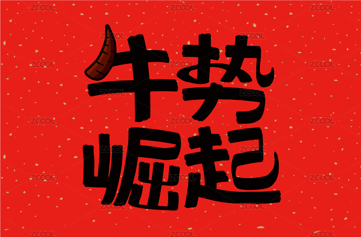 2021牛势崛起牛年红包鞭炮矢量书法字