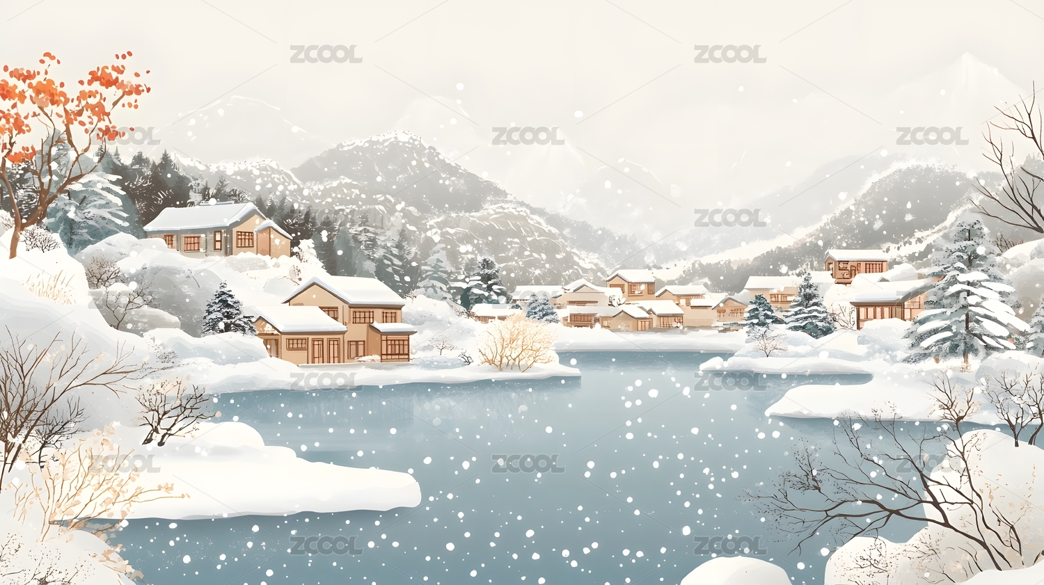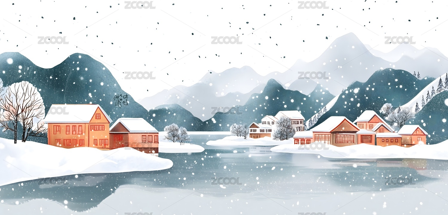 冬日山水风景插画