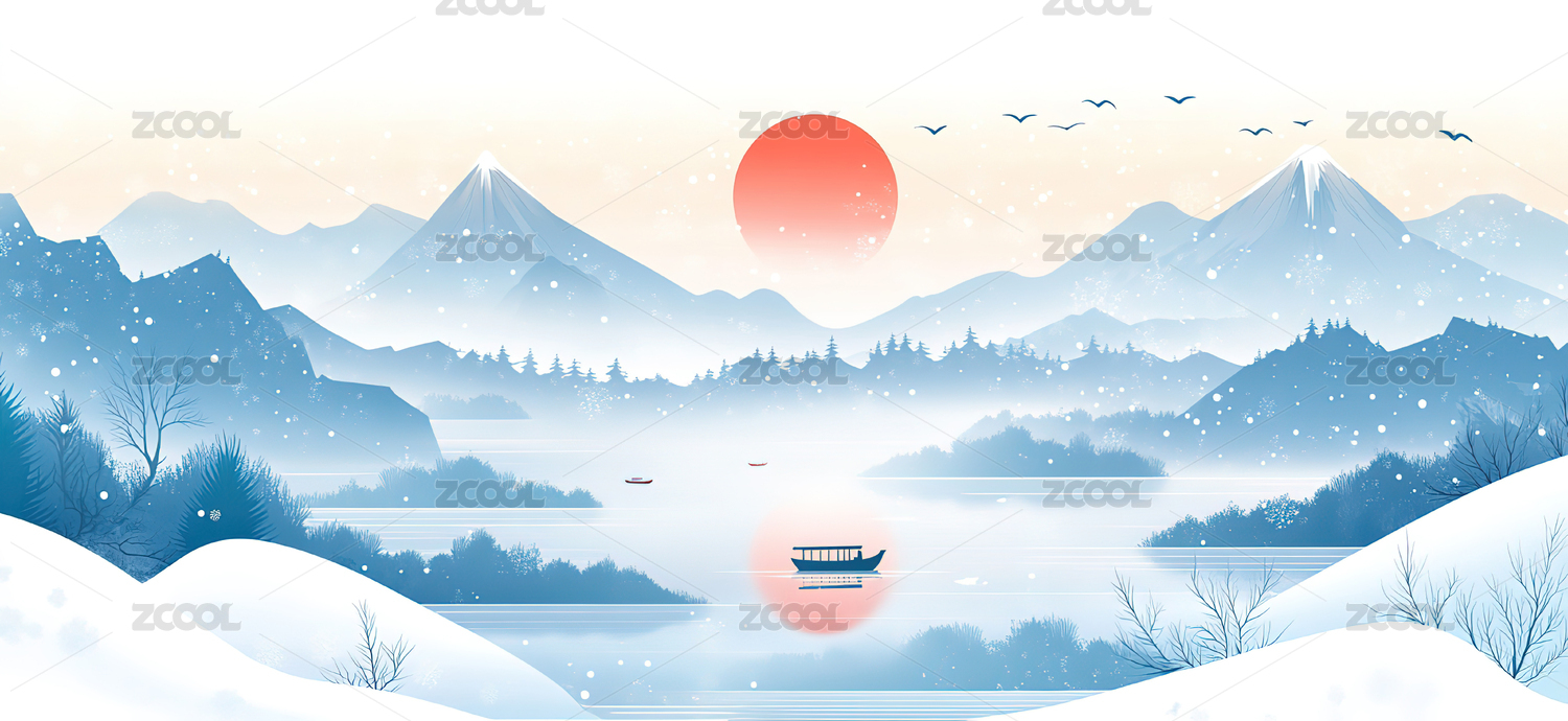 冬季唯美风景水墨风插画