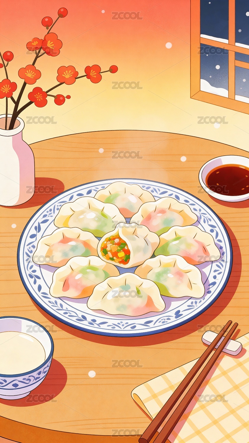 饺子背景插画