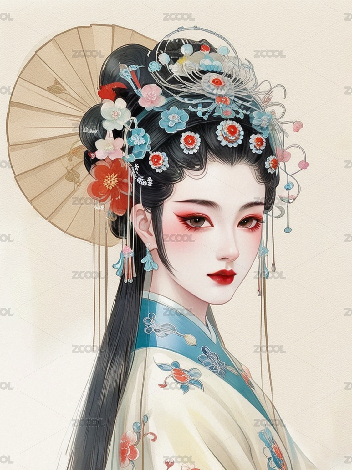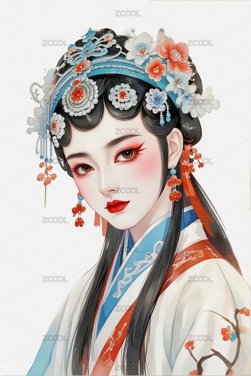 水墨中国风毛笔画国画图片工笔人物花鸟山水