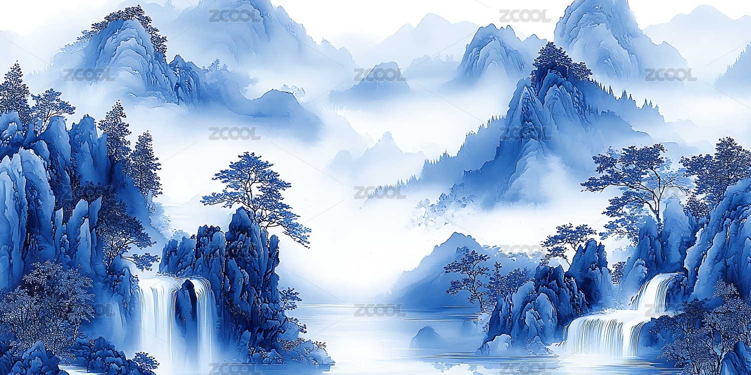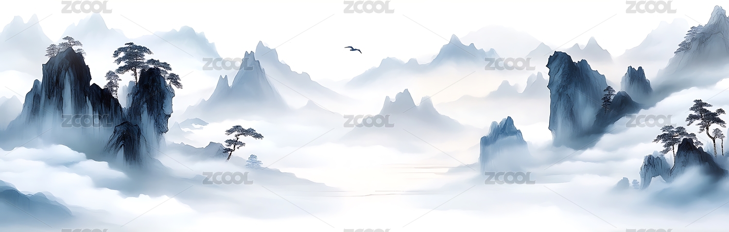 山清水秀的中国传统山水配以雾霭,诗情画意