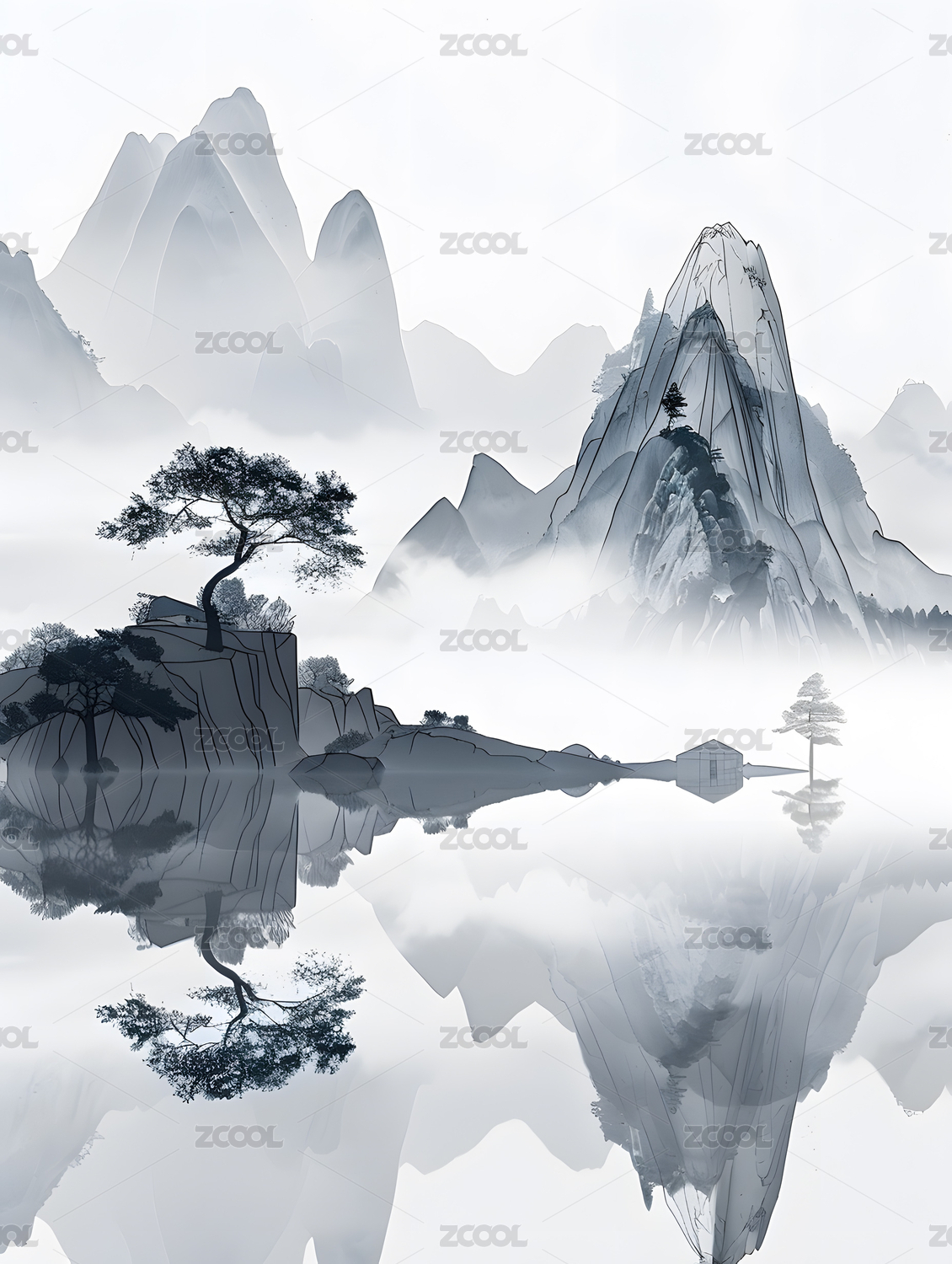 水墨山水,仙境孤岛。