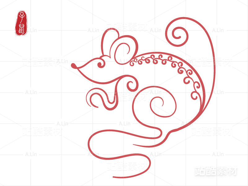 国风流线感老鼠线条画 剪纸风