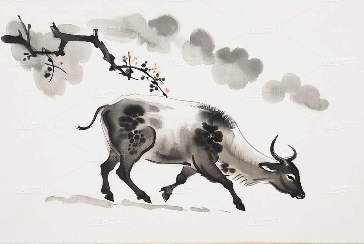 生肖牛主题的水墨画