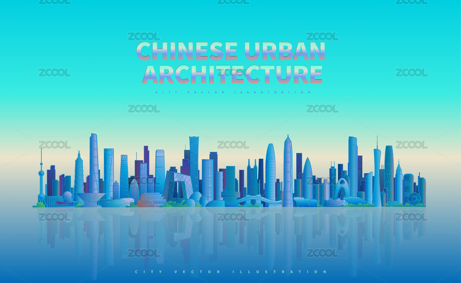 中国浙江省宁波市商务科技城市彩色矢量插画