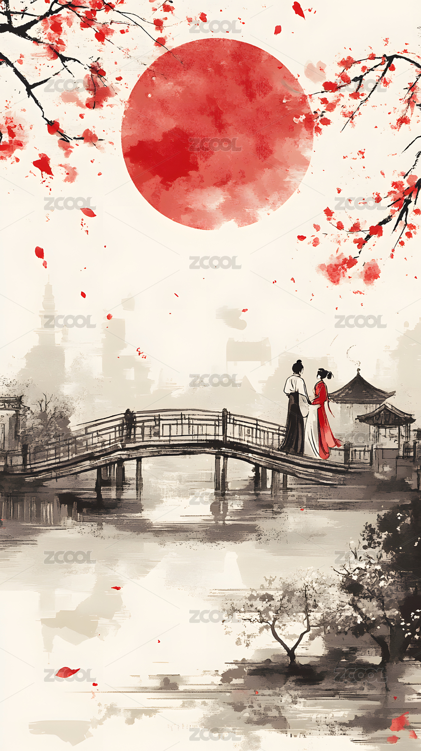 中国风节日水墨插画
