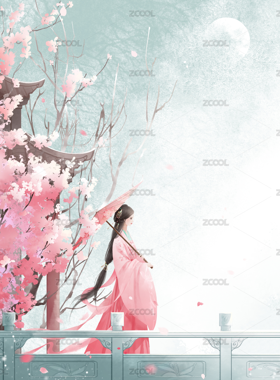 中国风人物伞植物唯美场景古风