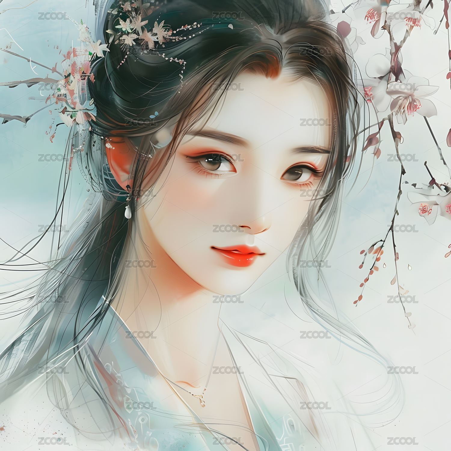 古风水墨画 少女头像