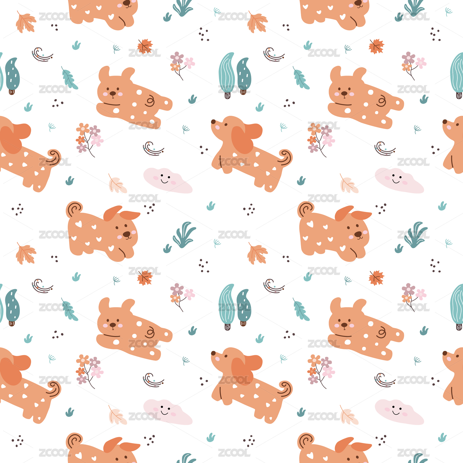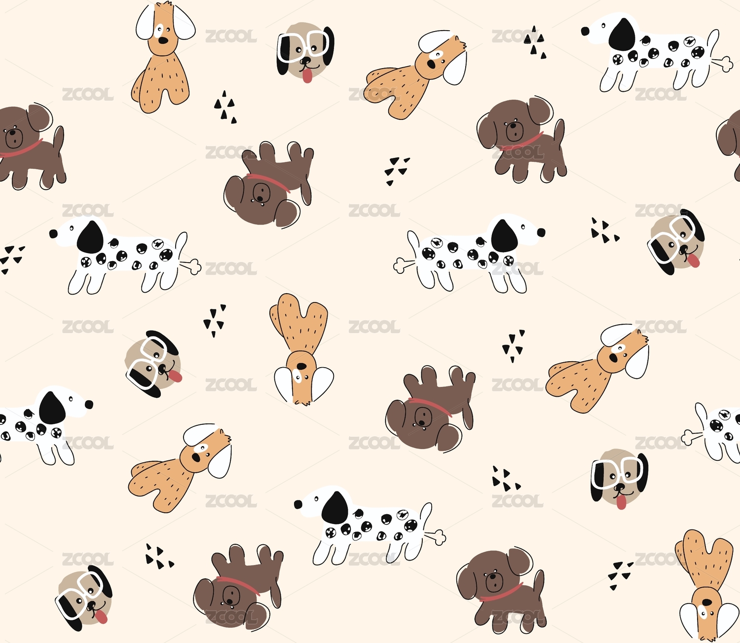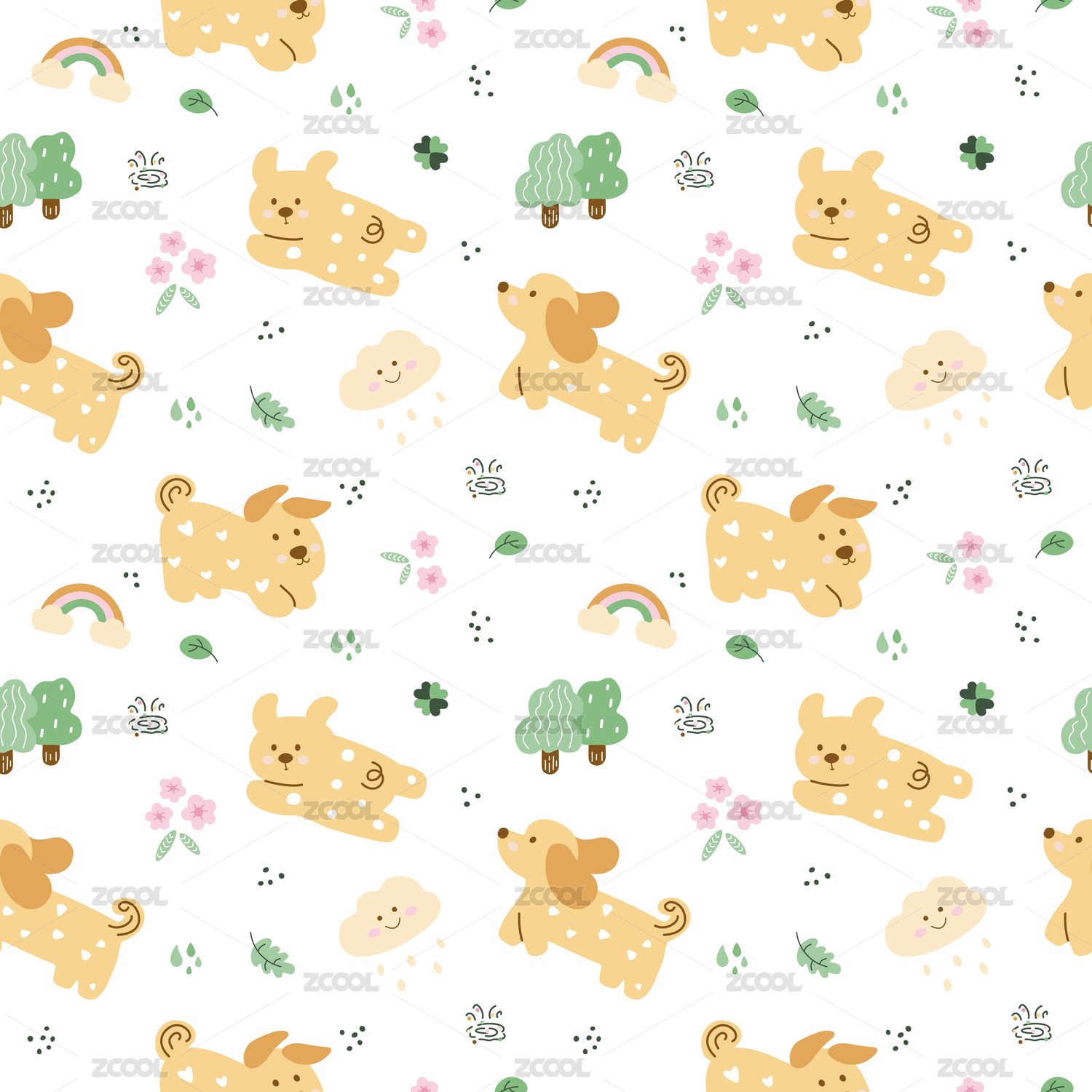 儿童可爱卡通条纹小狗无缝矢量背景印刷图案