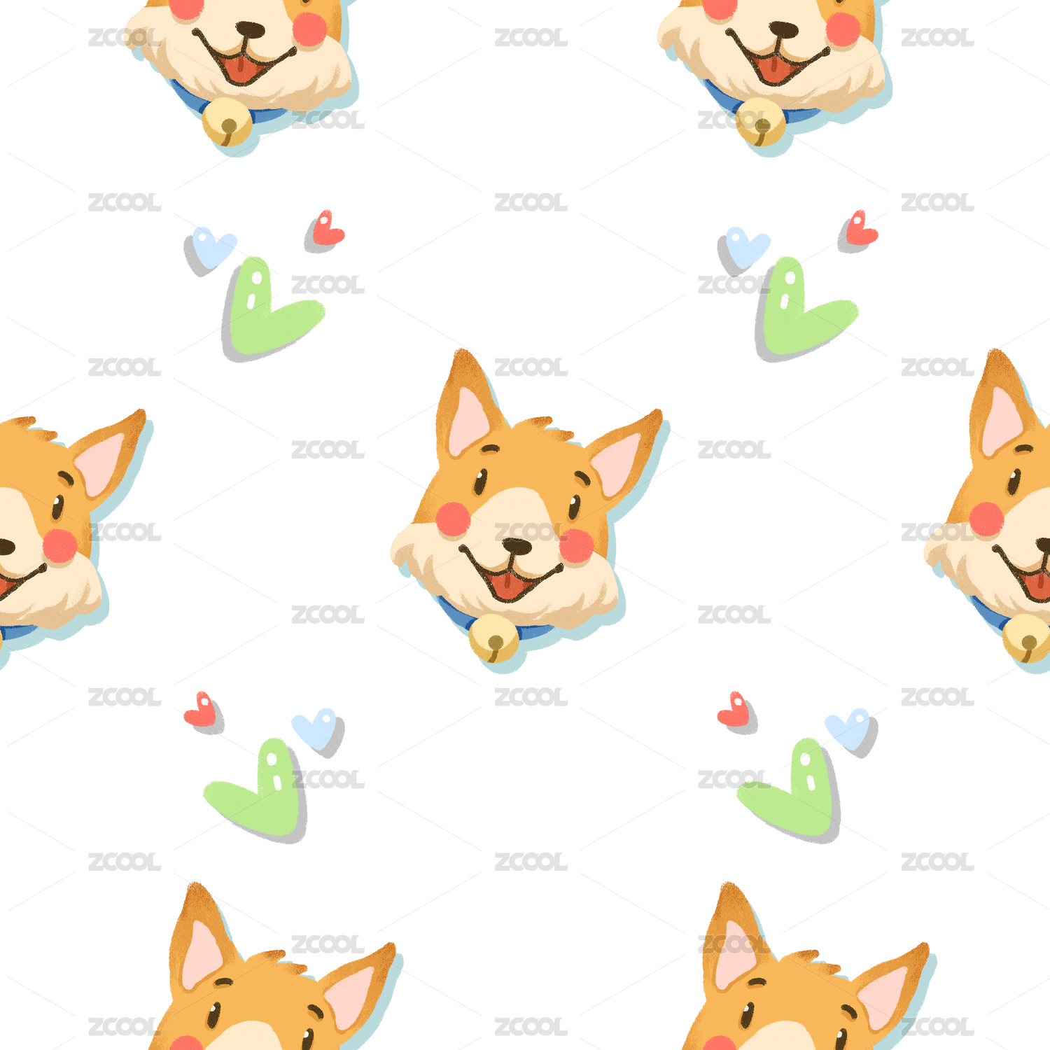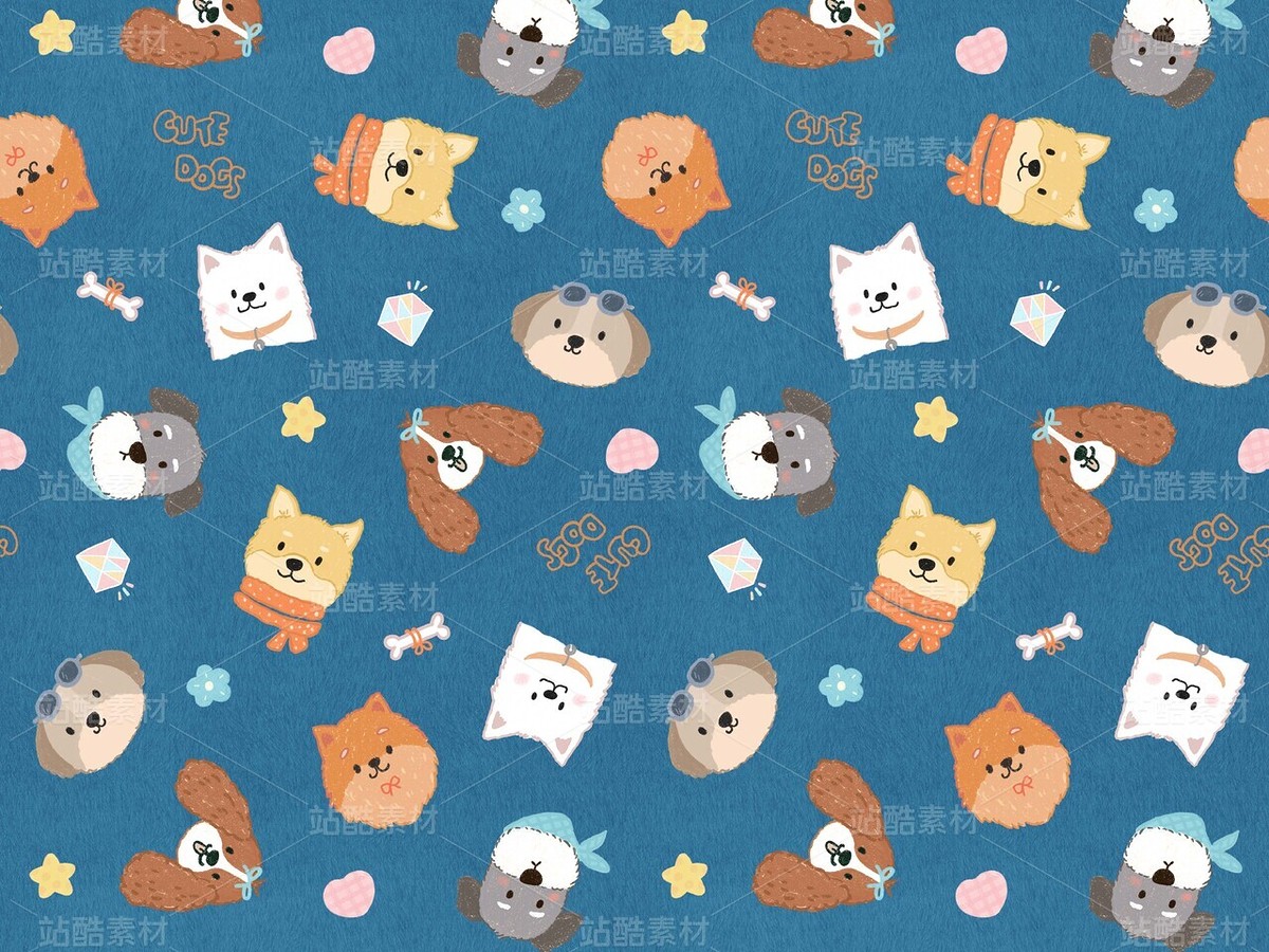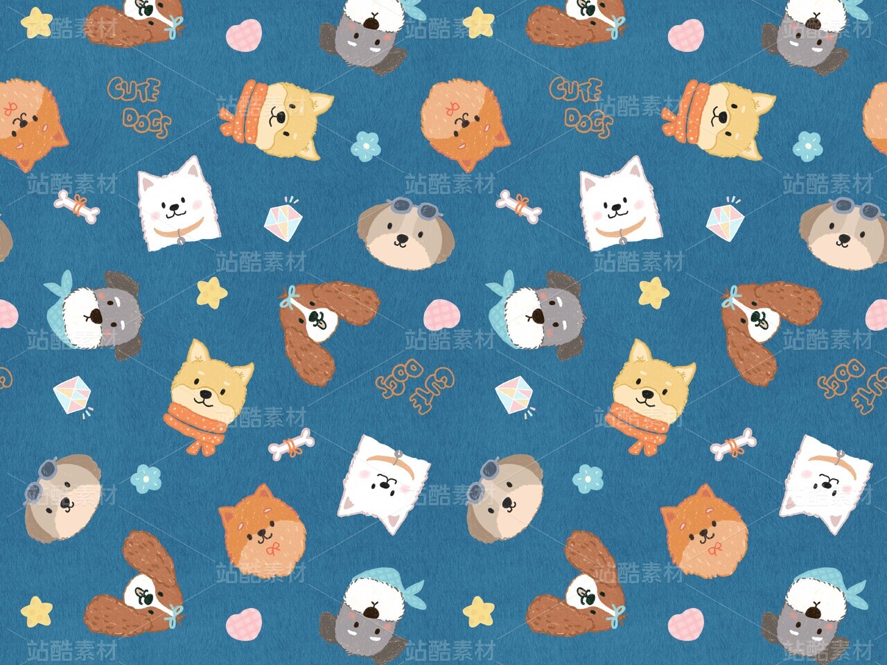儿童可爱卡通条纹小狗无缝矢量背景印刷图案