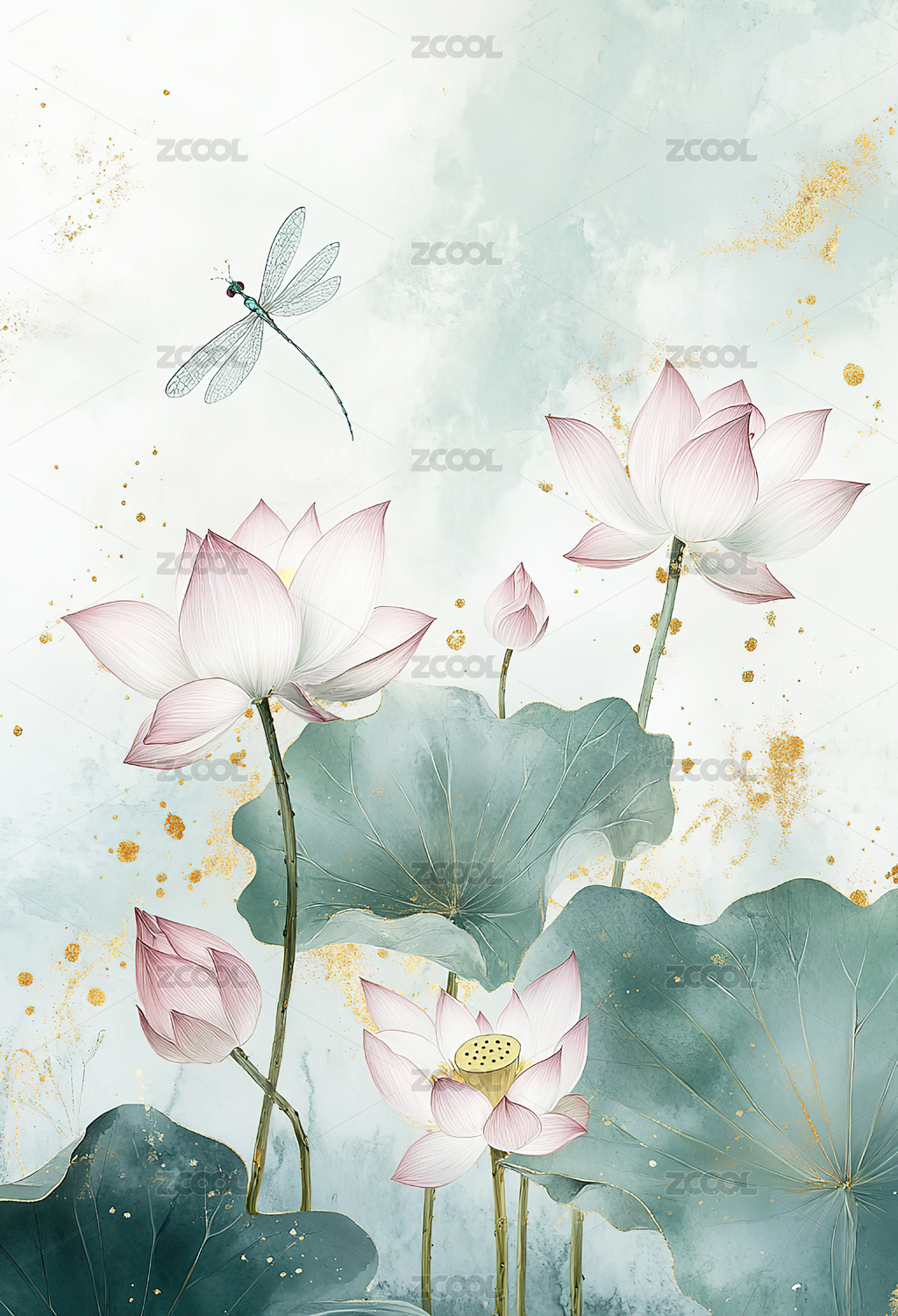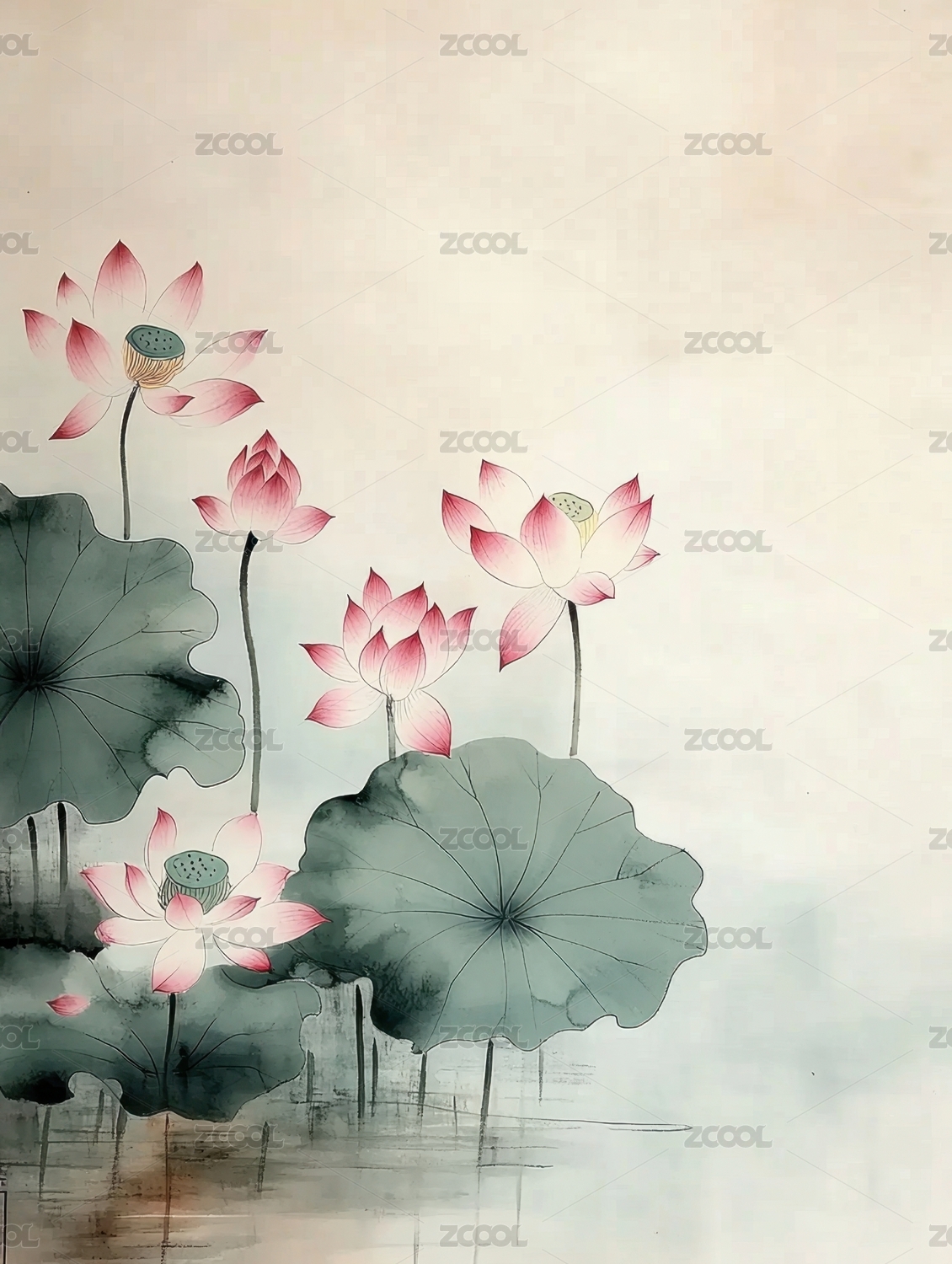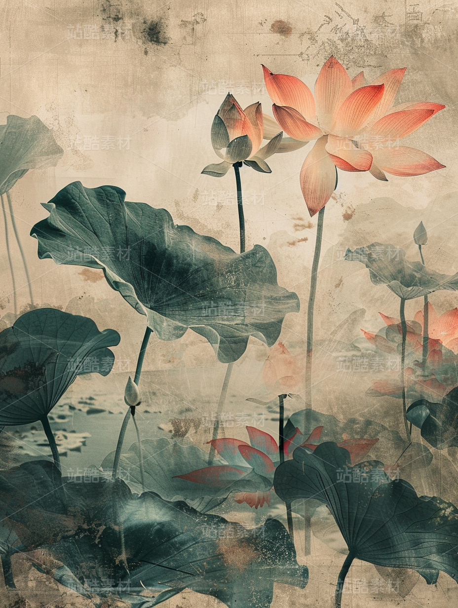 水墨莲花意境图