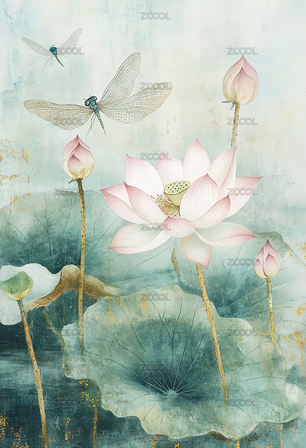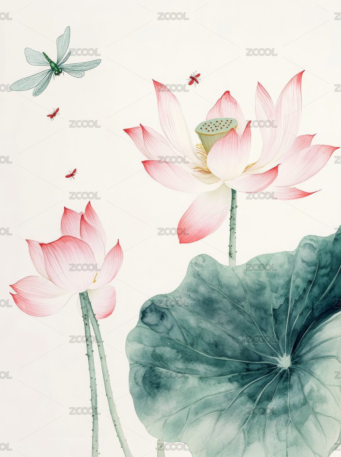 唯美国风荷花水墨插画
