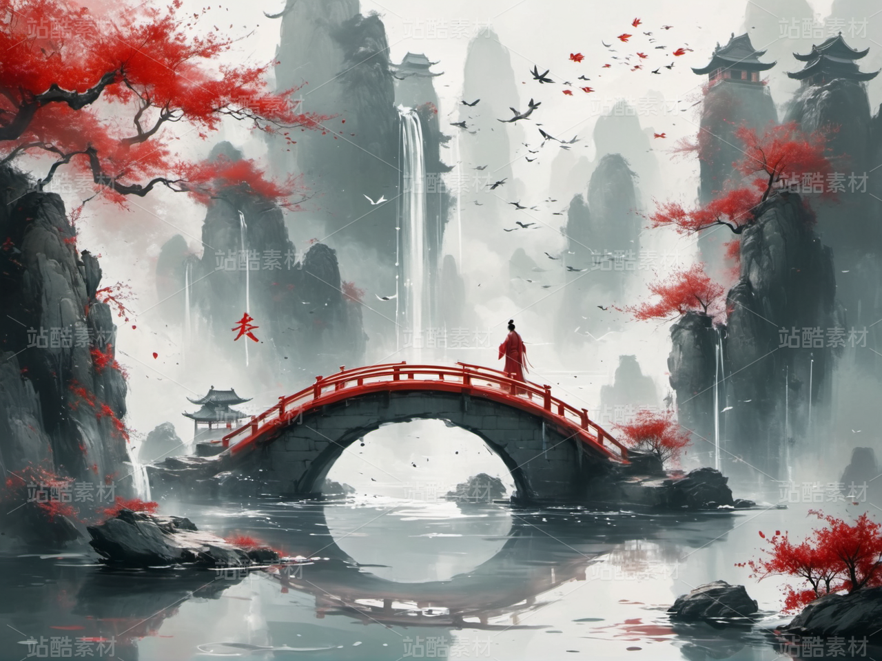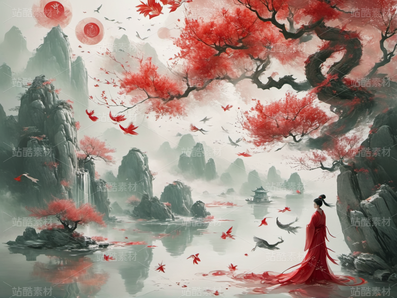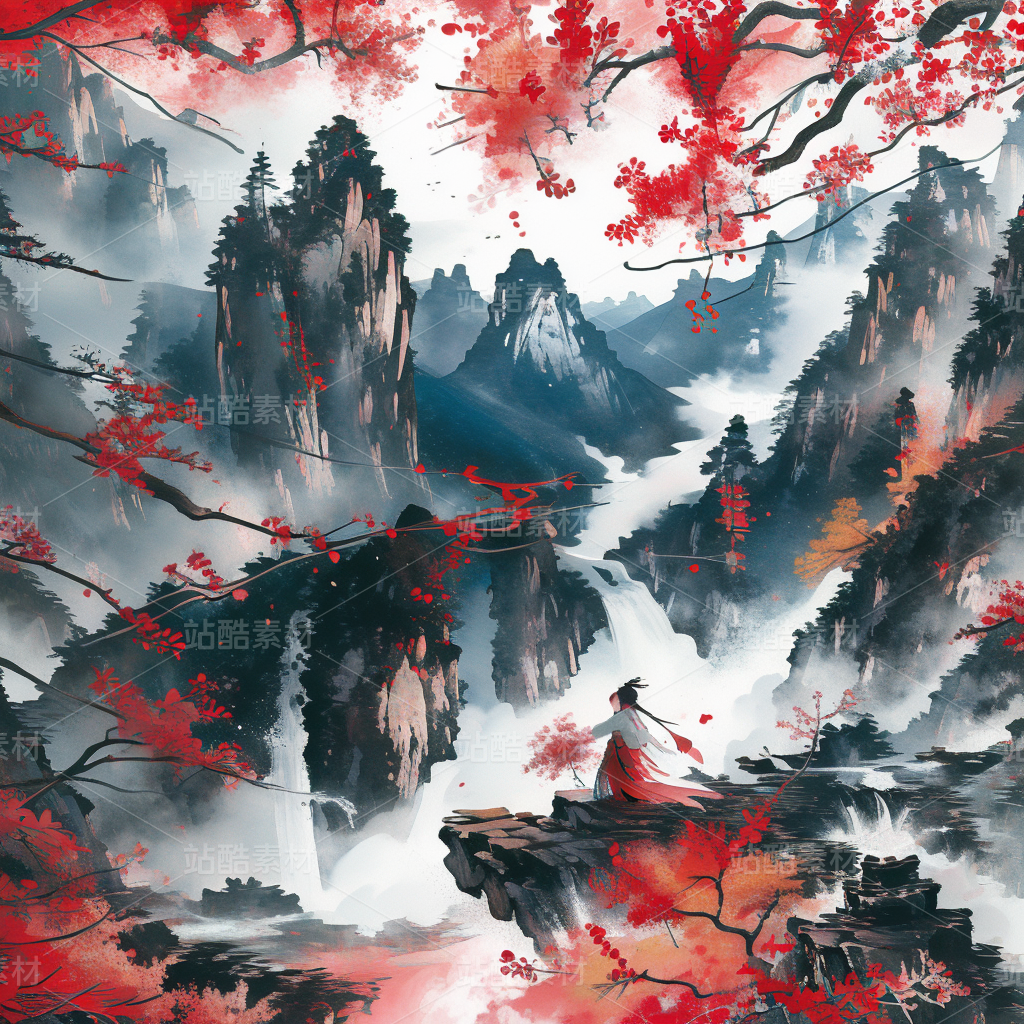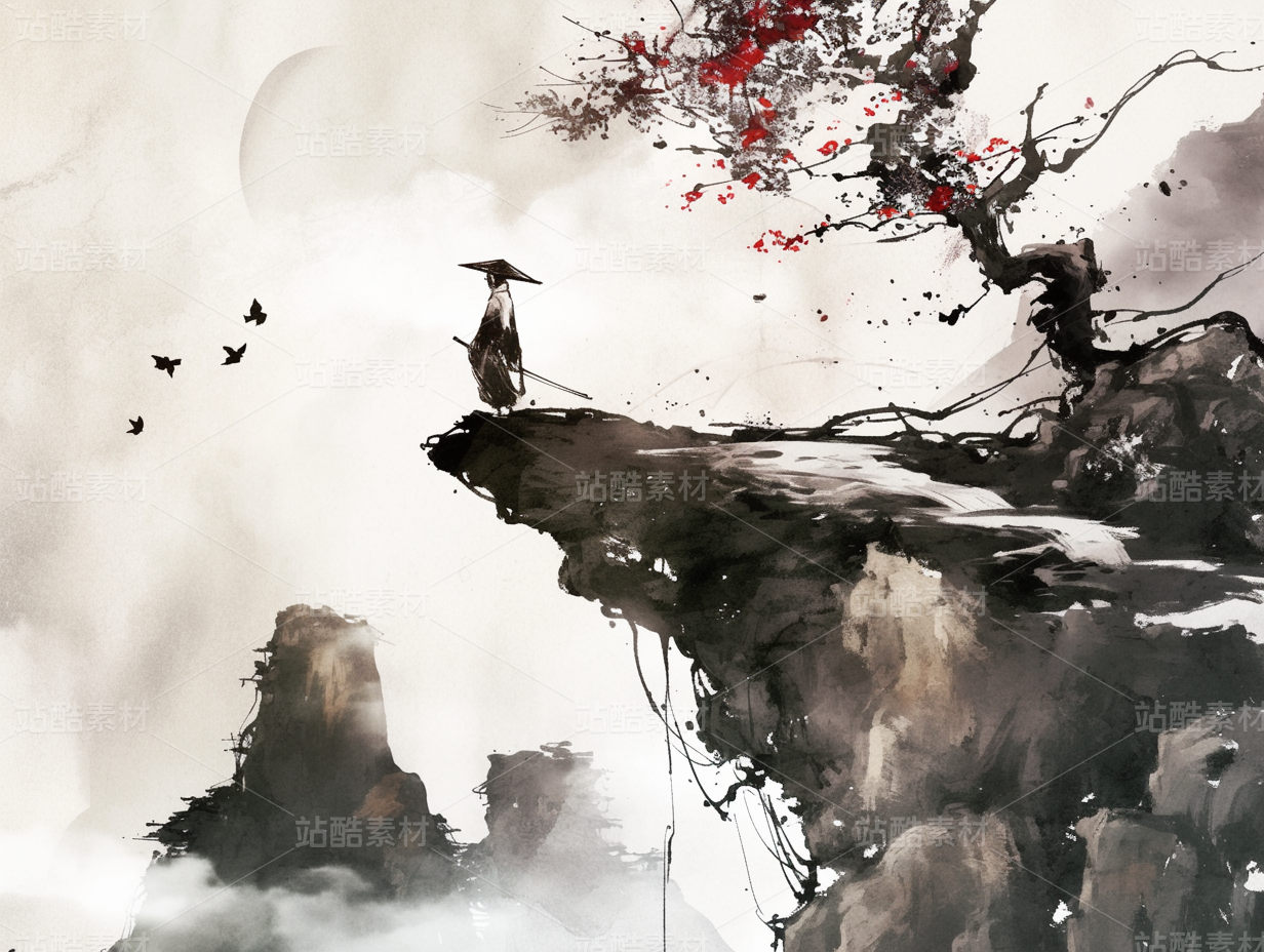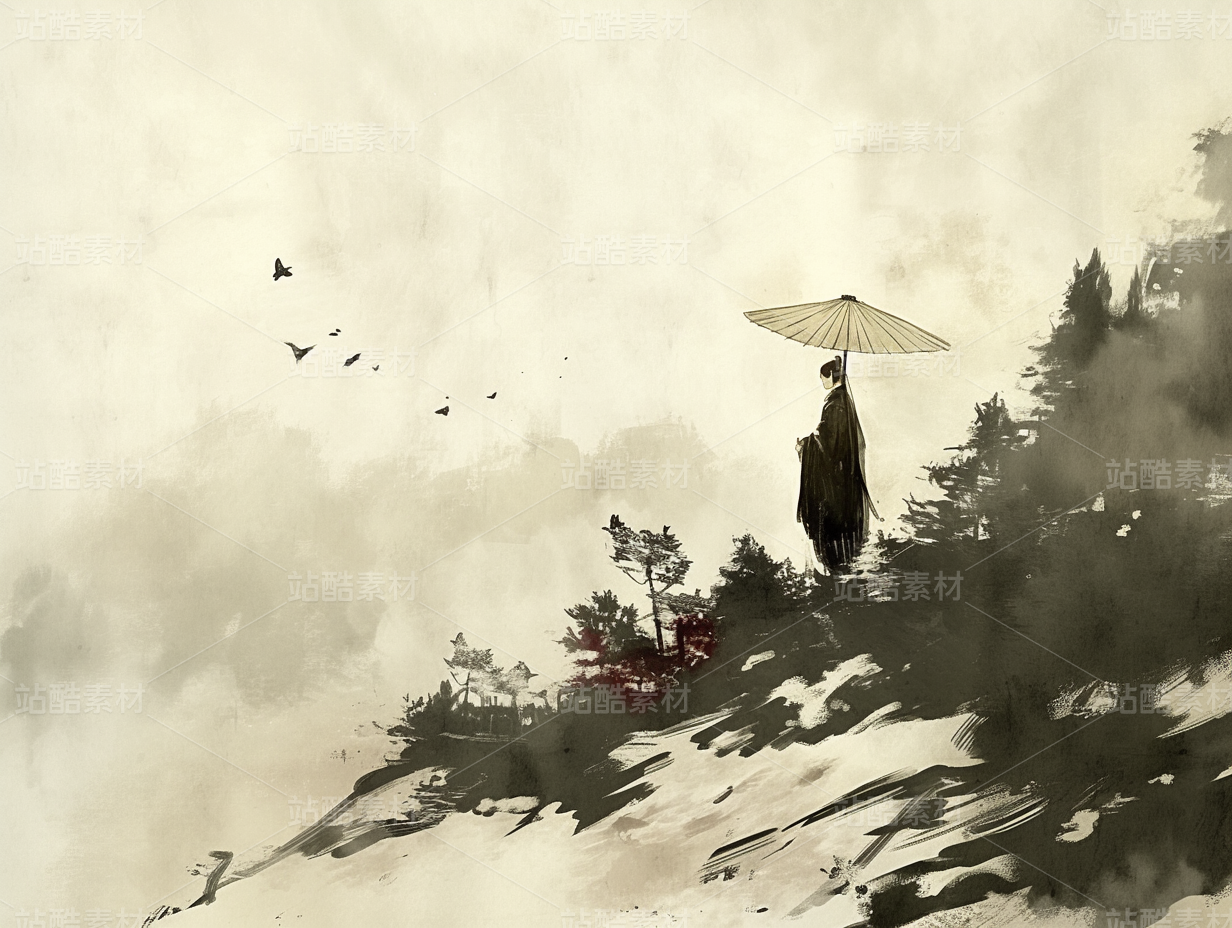 水墨中国风毛笔画国画图片工笔人物花鸟山水