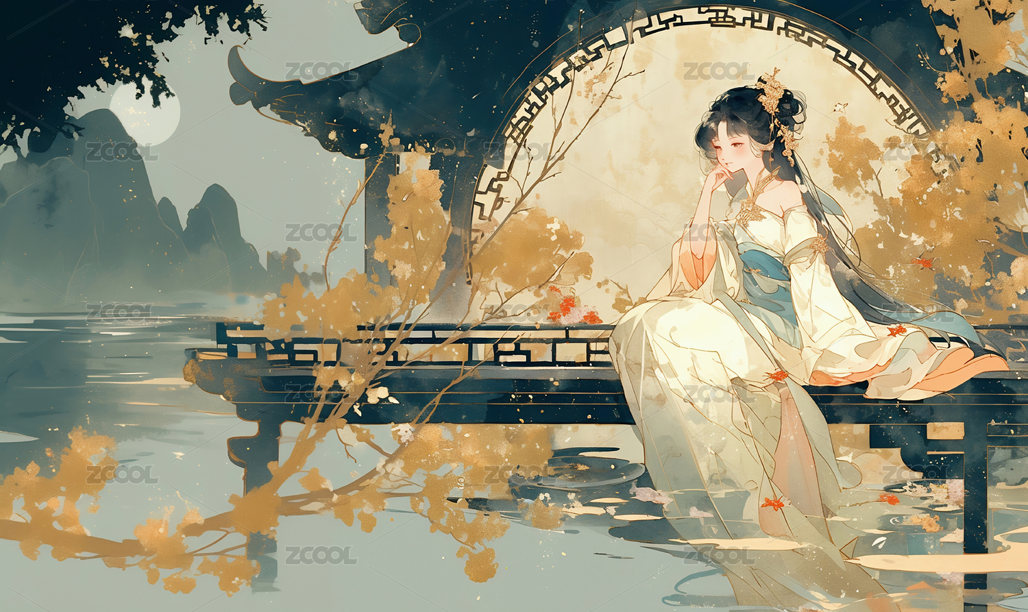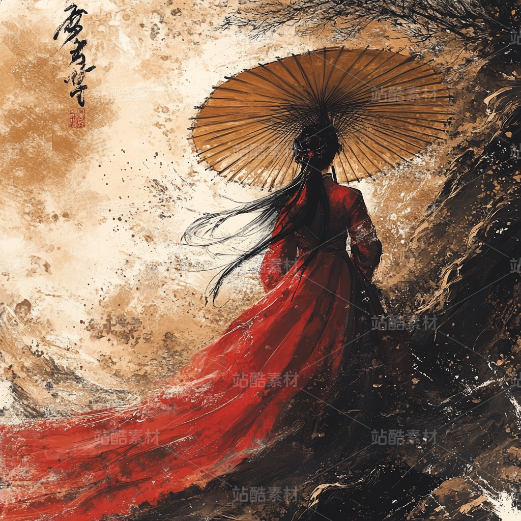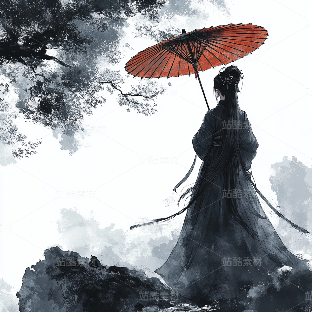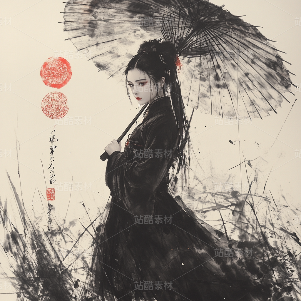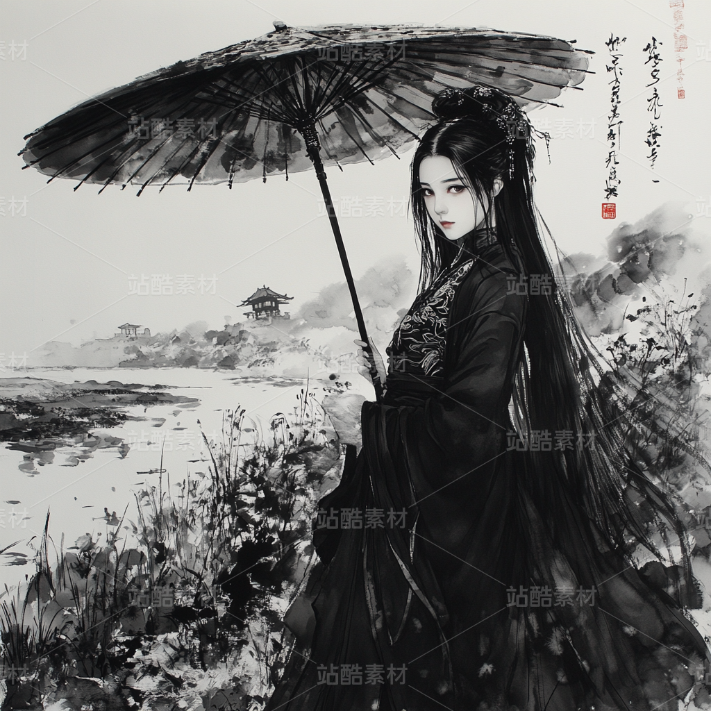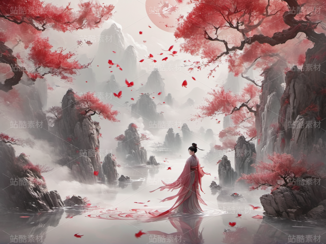 水墨中国风毛笔画国画图片工笔人物花鸟山水