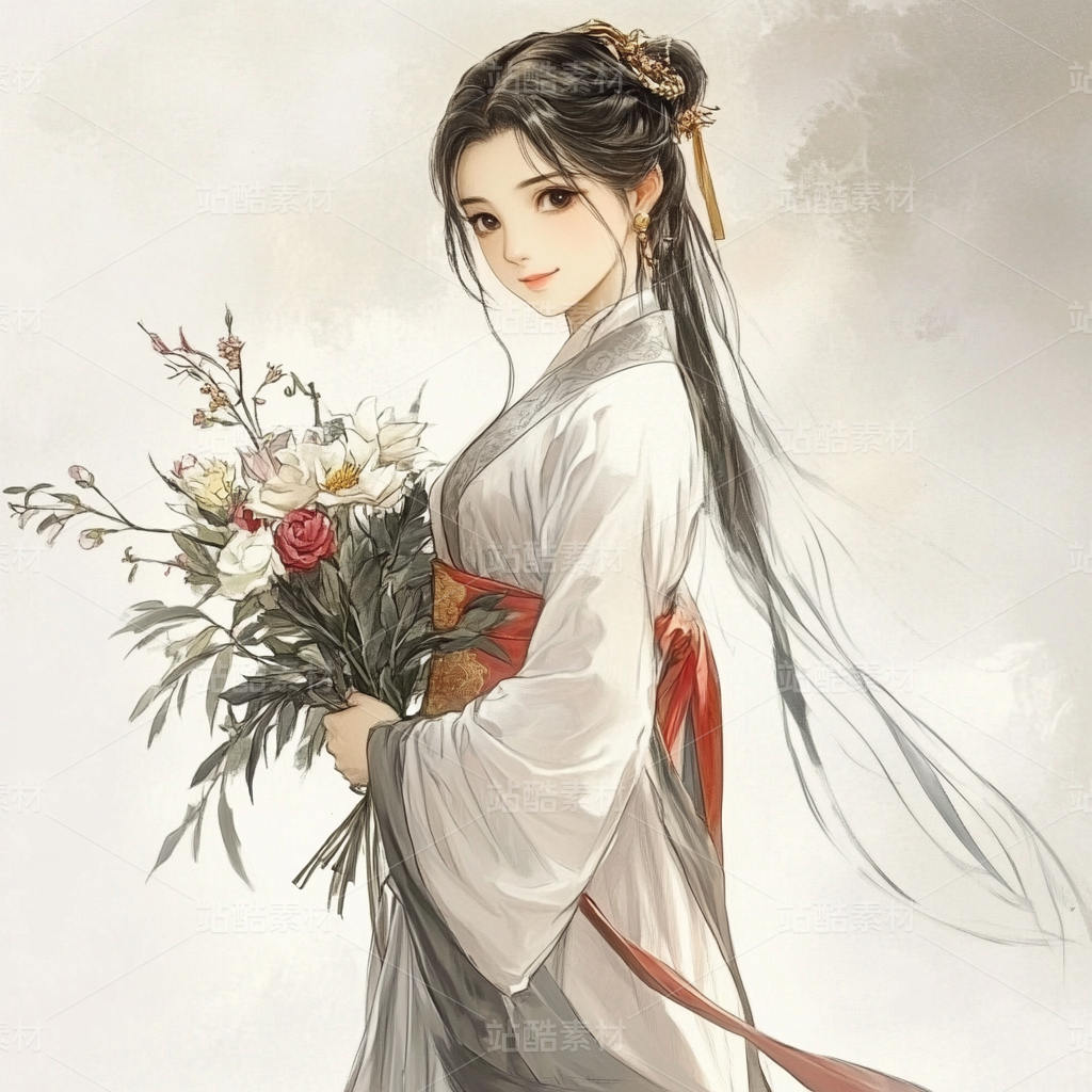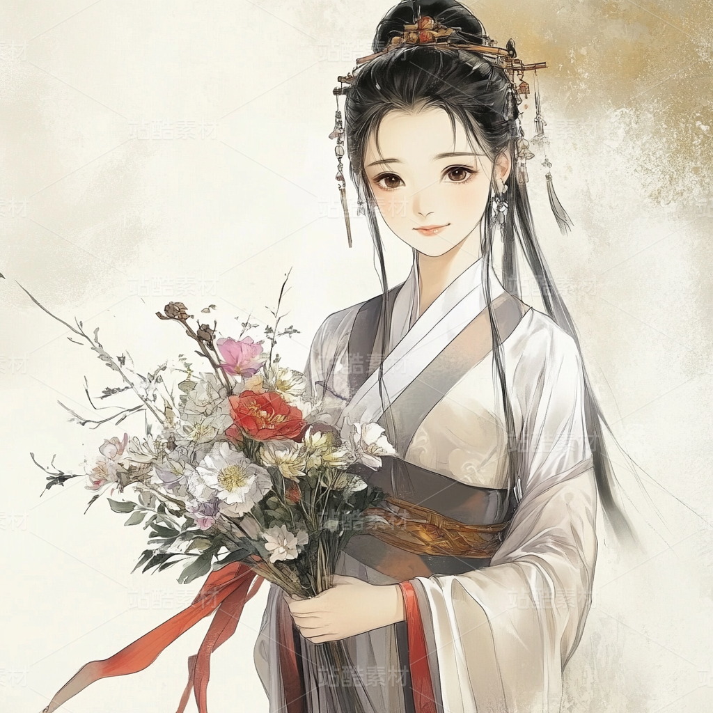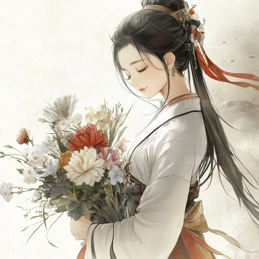 水墨中国风毛笔画国画图片工笔人物花鸟山水